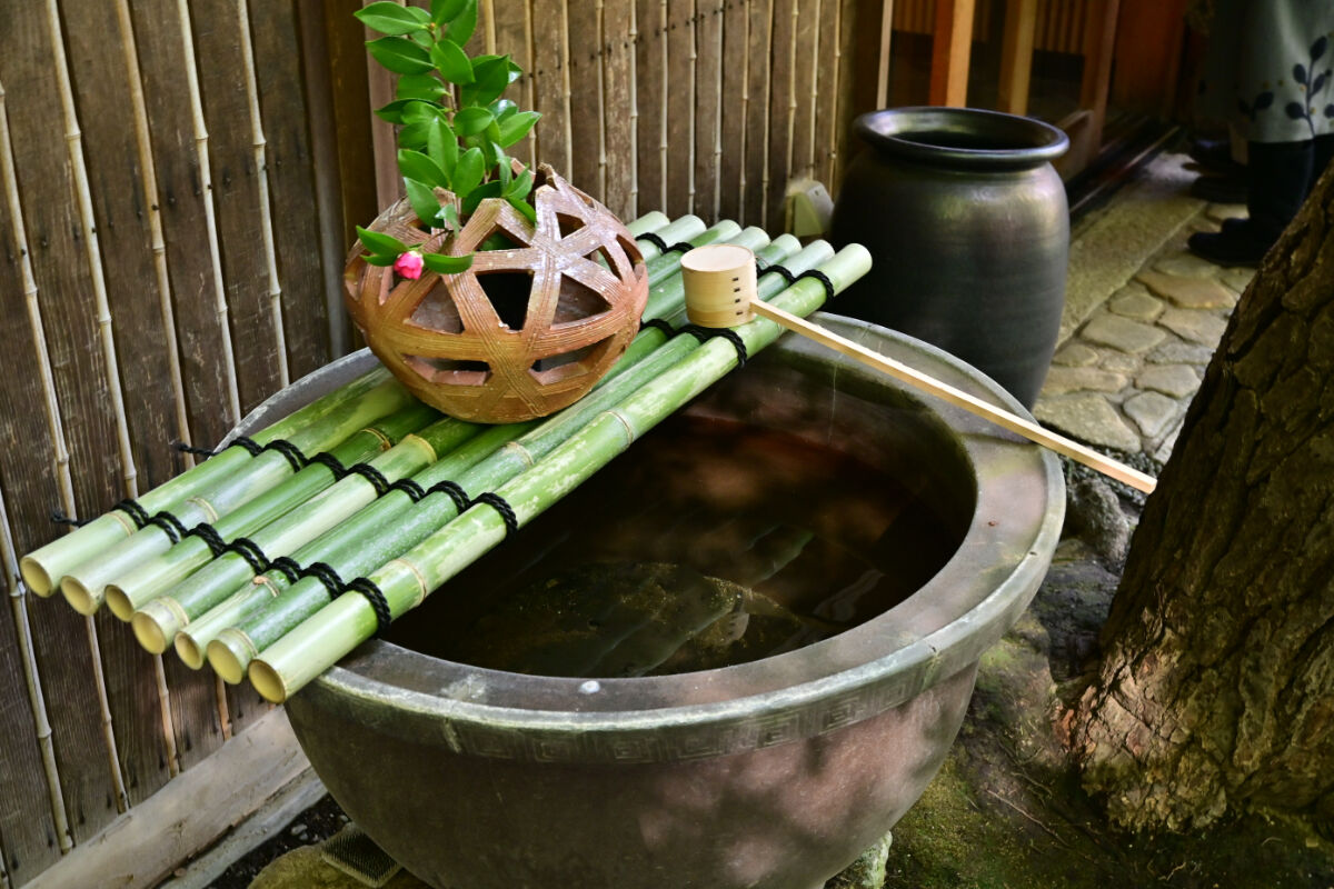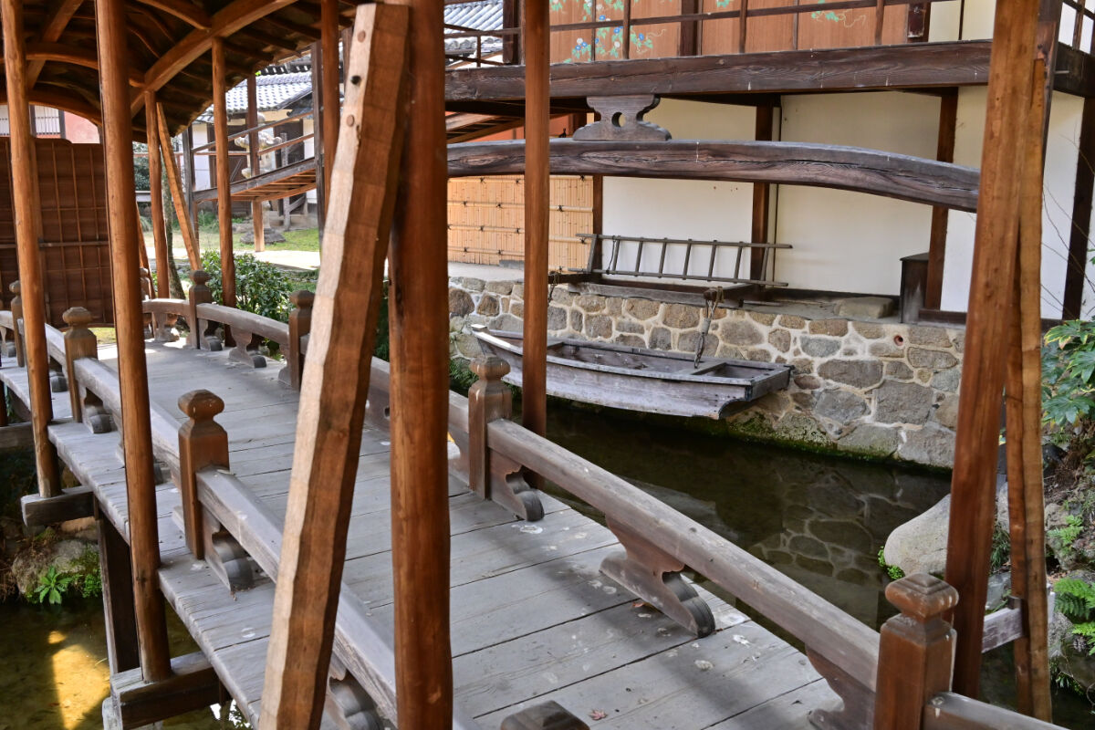 1層目は主室の招賢殿(しょうけんでん)や茶室などと,舟入(ふないり)の間があります。 飛雲閣は,滴翠園にある池「滄浪池」(そうろうち)に面して建てられていて,舟を直接正面に着けることができる造りです。書院造風で,落ち着いた雰囲。これは格式ある武家の住宅に見られるスタイルで,実用性と美しさが融合しています。