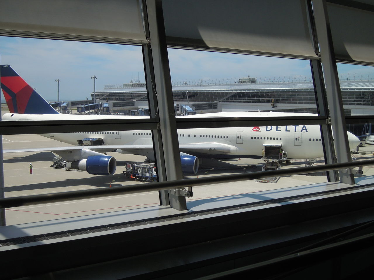 デルタ空港のカウンタに着いて自動チェックインをすると,ミネアポリス-デトロイト便は予定通りだが,デトロイトからのフライトが3時間遅れという表示があって,いやになった。