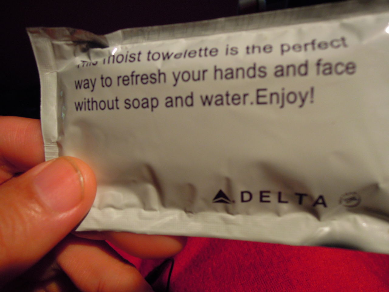 この旅行では,はじめのうちは,座席がいつも1番前だったのに,ビスマルクのときと,今回は,1番後ろの座席になった。機内サービスのソフトドリンクが来る頃には,もう,着陸態勢に入っていた。アップルジュースを頼むと,グッドアイデアねと言われて -残っている飲み物の種類が限られていたのだろう- 缶からジュースを注いだ残りの入った缶も全て渡された。