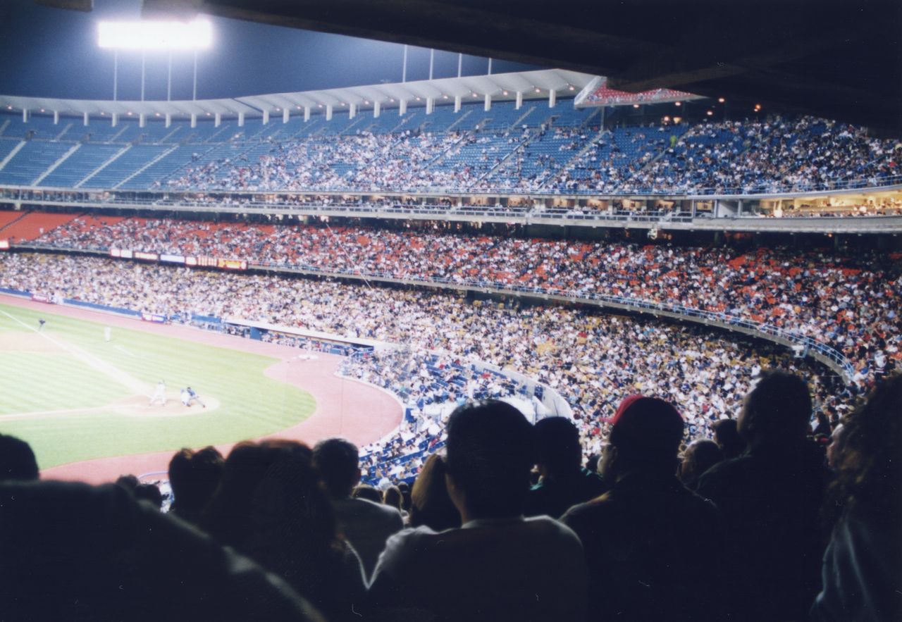 当時のロサンゼルス・ドジャースの本拠地ドジャースジアムは,広告が一切なく,カリフォルニアの大地にそびえる美しい球場の姿に,さすがアメリカだ,と感動したのを覚えています。場所ごとに色分けされた客席では,遠く離れたお客さんにビーナッツ売りが正確に商品を投球し,お金をバケツリレーさながらにお客さんの間を手渡しで回しているのを見て,妙に感心したり,7回裏の攻撃の前に,総立ちで何かしら有名であろうと思われた歌(この歌が「私を野球場に連れてって」だと知ったのははるか後のこと)を歌い,チャンスになればオルガンが響き渡る,日本にはない洗練された姿に心が躍りました。