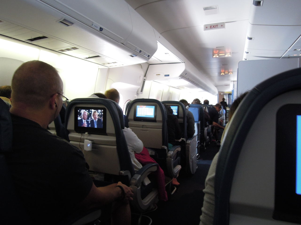 機内には,もう,「Hi!」といって気さくに話しかけるアメリカの香りはどこにもなかった。客室乗務員も,アメリカの国内便のような気さくさや明るさはこれっぽっちもなかった。みんなが不機嫌そうだった。