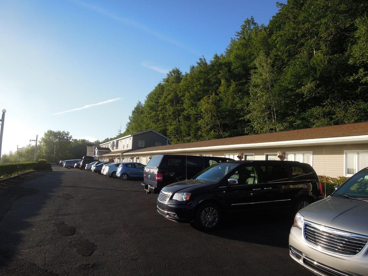 「レッド・カーペット・イン・ブルックリン」に到着した。ホテルの敷地は塀に囲まれていて,塀の中の建物の隣の駐車スペースに車を停めた。ゲートがあって,この時はゲートは開いていたが,夜になるとこのゲートが閉められるかどうかはわからなかった。