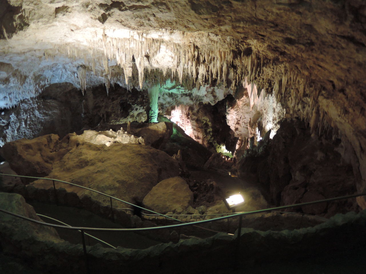 ふつう,鍾乳洞は石灰岩が水で溶かされてできるものなのですが,ここカールズバッドの鍾乳洞は硫酸が作ったきわめてめずらしいものです。