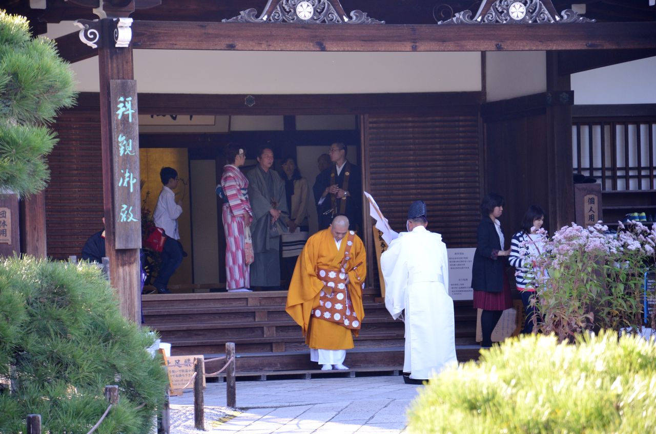私たちが行ったときに遭遇した珍しい出来事というのは,この仁和寺に神主さんがご挨拶に見えたということでした。神主さんとお寺⁉ 私はちょうど神主さんが山門を入られるのに遭遇してびっくりしたのですが,それを見ていた地元の人がいたので,どういうことか聞いてみました。