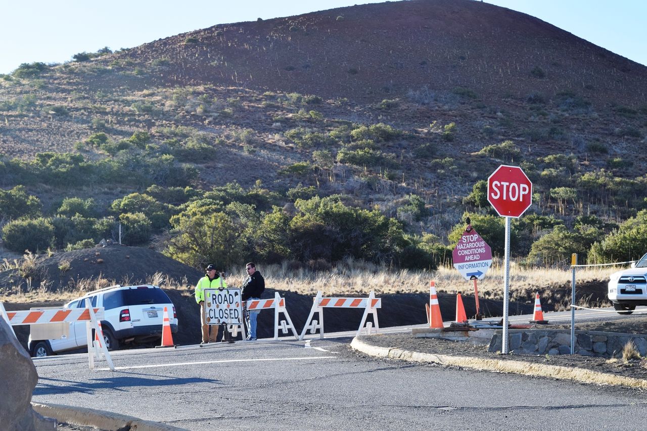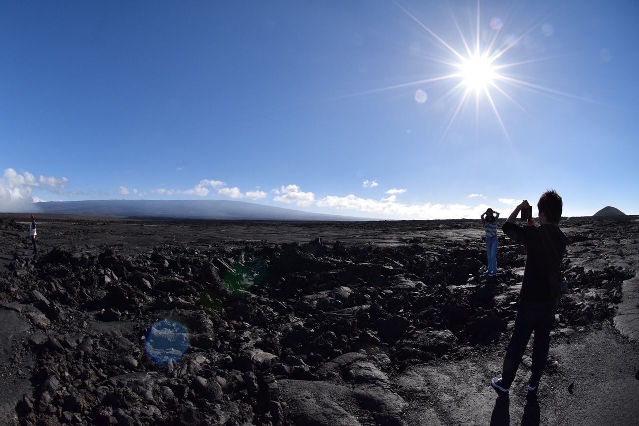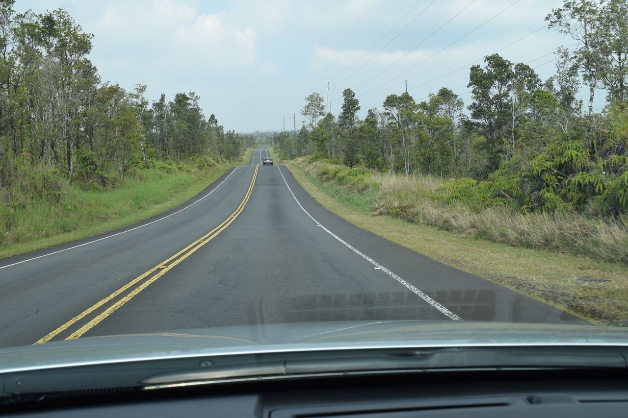 道路の周りは荒涼とした大地が広がっていて,溶岩だらけの真っ黒な,アイダホ州の「クレイター・オブ・ザ・ムーン」とおなじ感じになってきた。ハワイ島は火山島で,島のどこかしかもこんな状況であった。