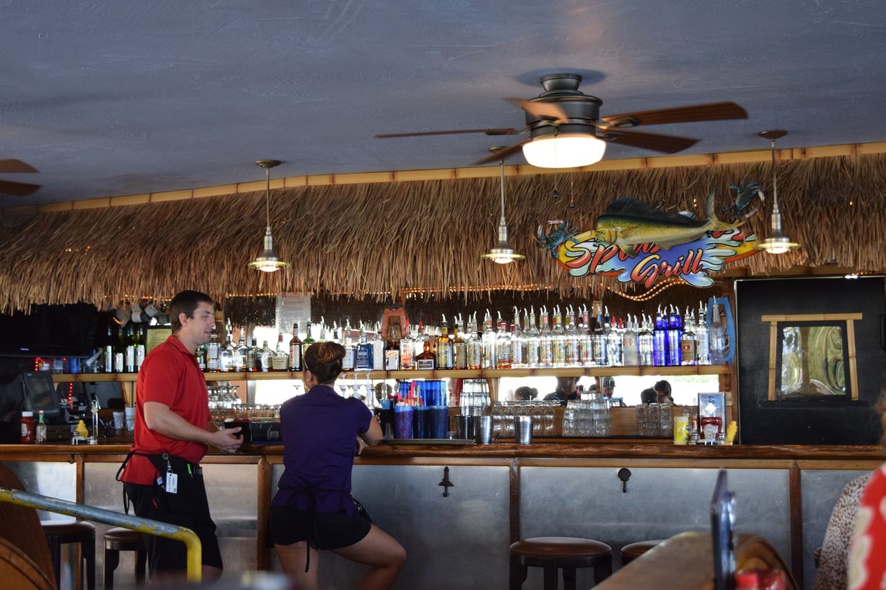すっかり気が大きくなって,とりあえず優雅に昼食をとることにして,海岸沿いにあった「スプラッシャーズ・グリル」(Splashers Grill)という2階建ての建物の2階にあったレストランへの階段を昇っていったのである。