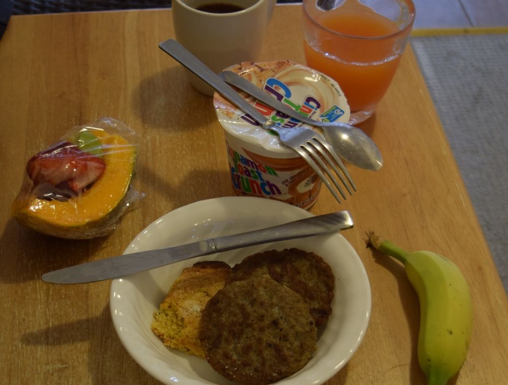 どう考えてもこれだけでは野菜が不足しているのだが,それは夕食で補うことにして,アメリカでは量が日本よりも多いから,お昼は適当にしておかないとえらいことになる。とはいえ,私が昼食をレストランでとるということ自体が,かなり珍しいことなのである。
