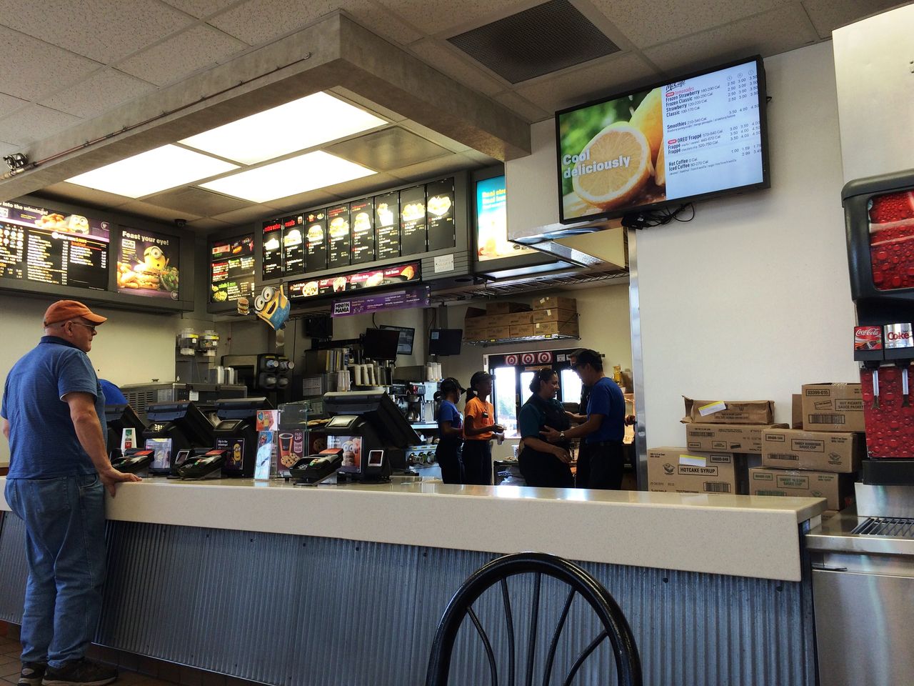 クマのモニュメントのあるロータリーの南にマクドナルドがあったので,車を停めて中に入った。