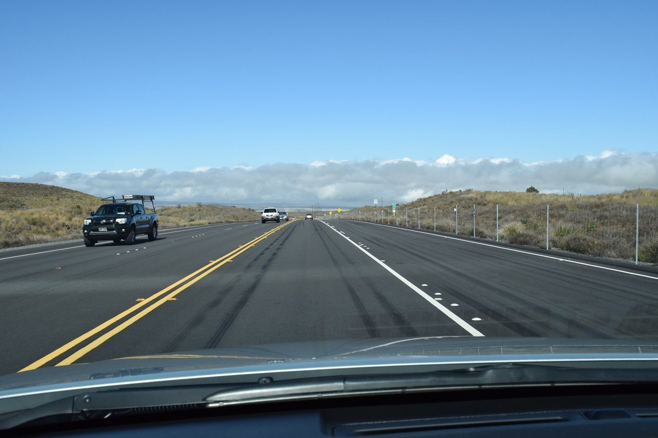 そこから20分くらいマウナケア・ロードを登っていくと,標高2,800メートルのオニヅカ・ビジター・センターが見えてきた。マウナケア・ロードは,片側1車線の整備された舗装道路であった。