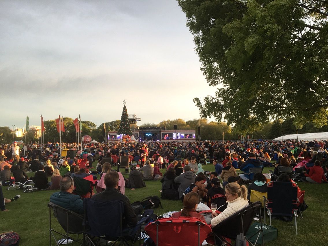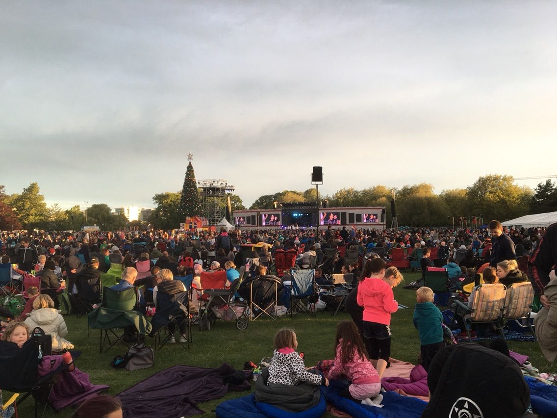 さて,ホテルに戻って,今度は近くにあるハグレイパーク(Hagley Park)へ歩いて行ってみたのですが,それがまた美しくむちゃくちゃ広いこと。しかも広場ではクリスマスコンサートをやっていて,すごく多くの人が集まっていました。街中の若者がみんな集まったような感じでした。他に楽しみもありませんから。