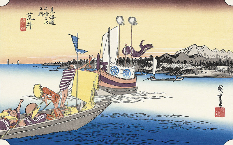 脇本陣を出てそのまま西に旧東海道を歩いていくと,目の前に見えてくるのが浜名湖です。ここの景色は素晴らしいものです。きっと江戸時代の旅人も同じだったと思うのですが,現代と違うのは,ここから次の新居の宿までは2時間ほどの船旅だったということと,新居の宿に着けば関所が待っているということです。