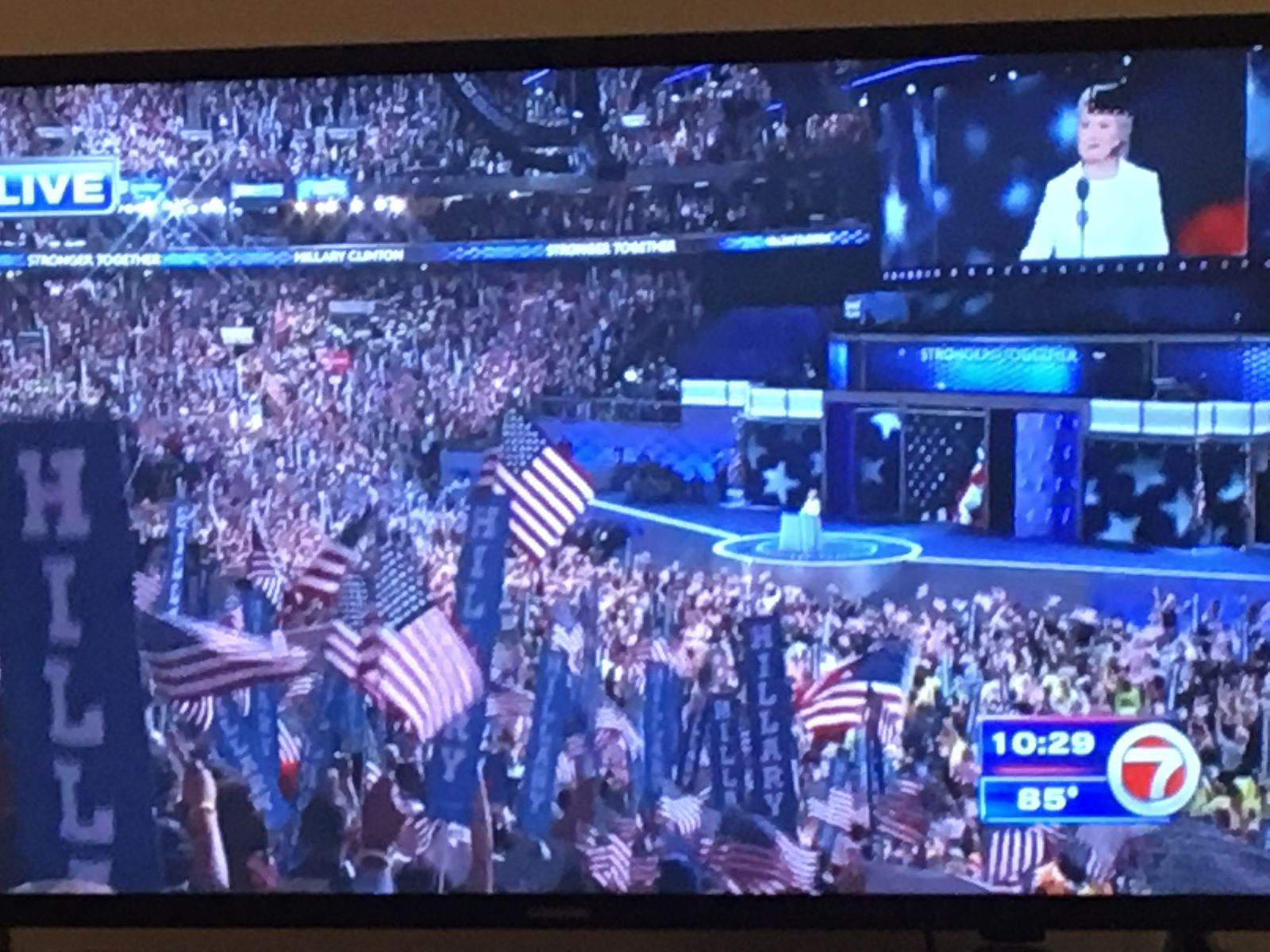 この日は民主党の大統領候補者が決まる日ということで,テレビでは民主党の党大会をライブで中継していた。こういう日に偶然アメリカにいるというのも,けっこう「オツ」なものである。