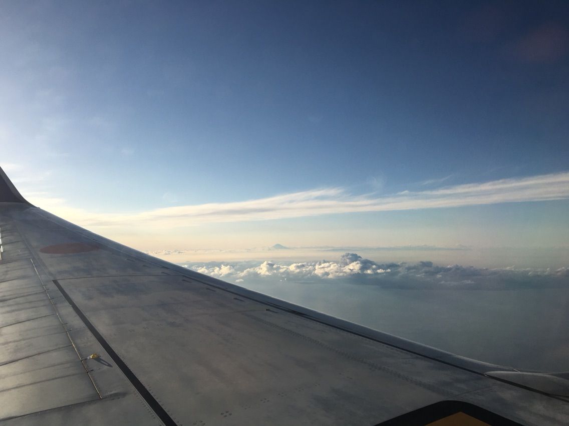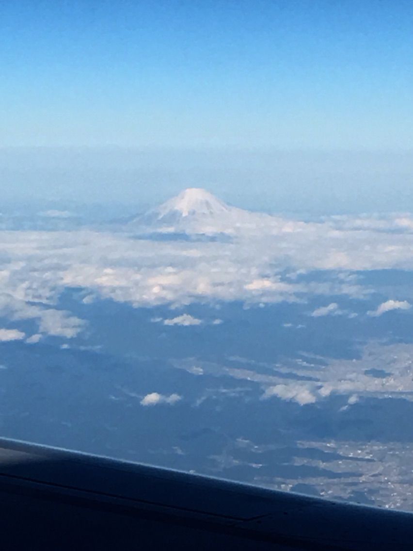 セントレア・中部国際空港を定刻に離陸したANAは,予約のときに左の窓側の座席を選んでおきました。富士山を見るのが目的で選んだのですが,目論見どおりというか期待以上というか,離陸直後からすぐに見えはじめた富士山は成田着陸までずっとその美しい姿を見せていました。飛行機の進路は富士山を円の中心にして弧を描いているのです。これだけで私はすっかり満足しました。