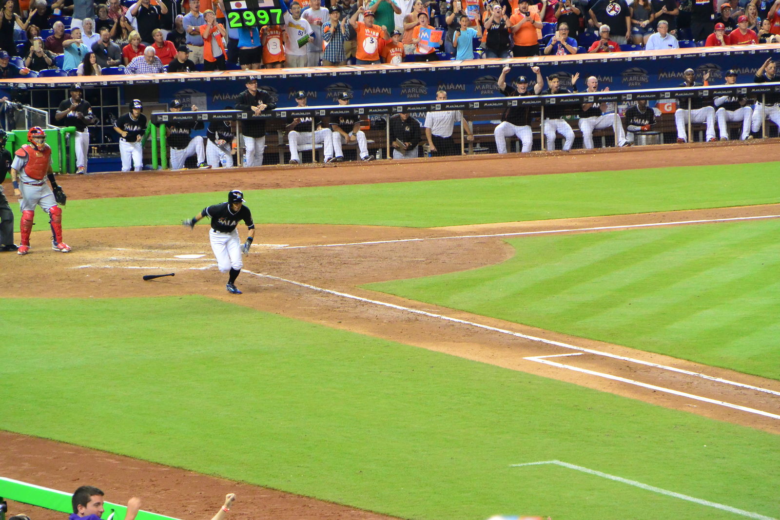 また後で詳しく書くことになるが,結局,この日は残念ながらイチロー選手は4打数無安打で記録が達成できなかった。しかし,次の日からマーリンズは遠征に出るので,あきらめもつくというものだった。