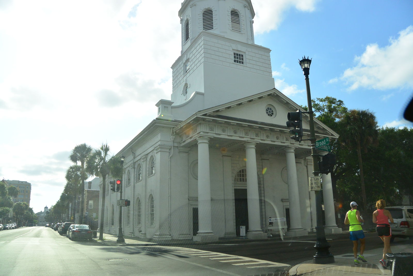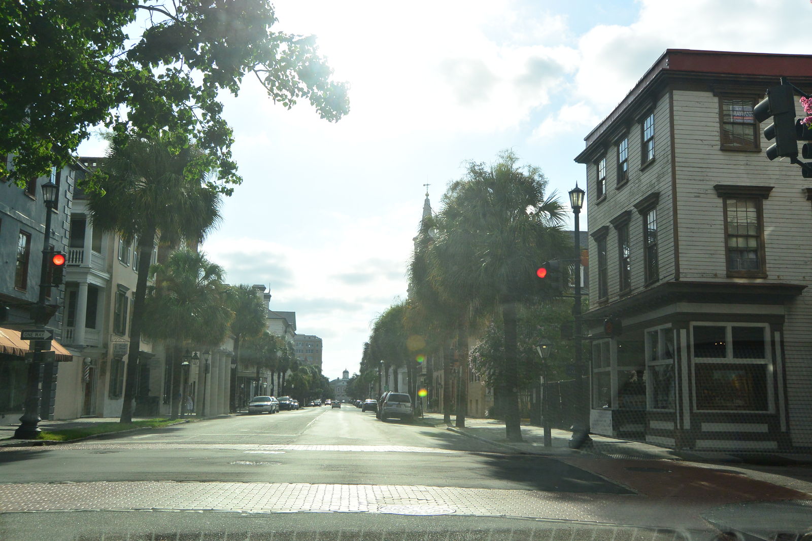 歴史地区は南北に走るキング・ストリート(King Street)を中心とした2キロメートル四方ほどだから,歩いてまわることができる。写真のように,キング・ストリートは車がやっとすれ違えるくらいの細い通りで,歩道もすれ違いができないほど狭いのだが,この落ち着いた雰囲気や白壁に塗られた住宅,そしてその庭には椰子の木が植えられていて南国情緒をかもし出している。