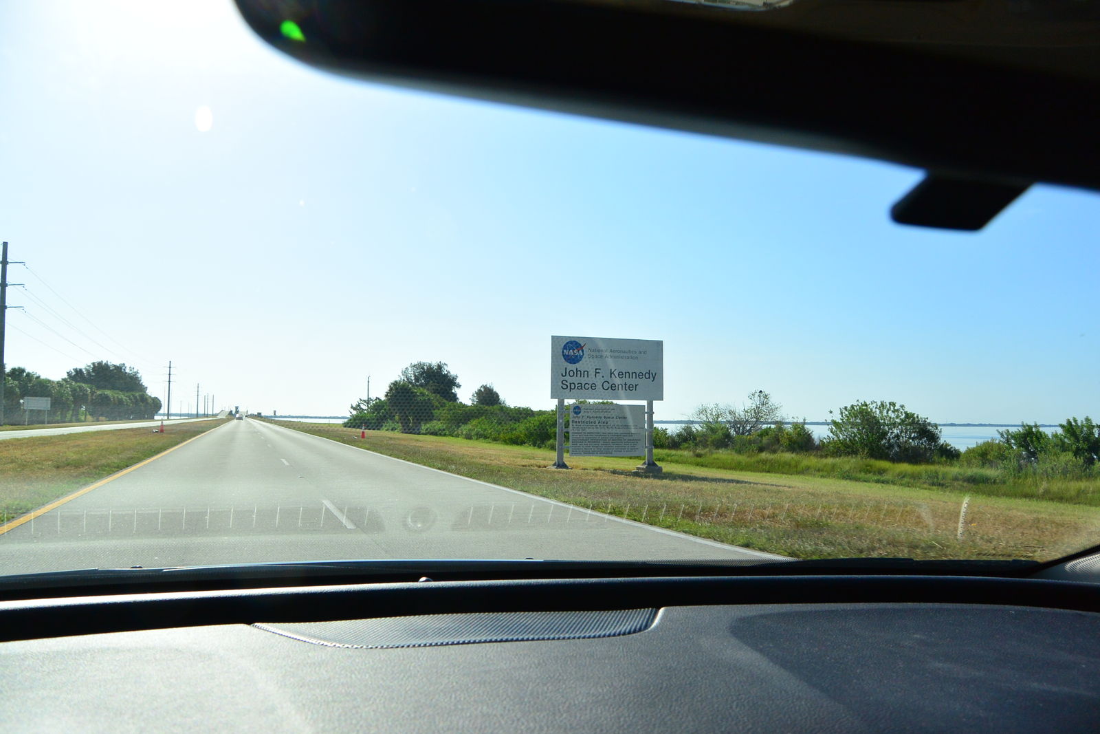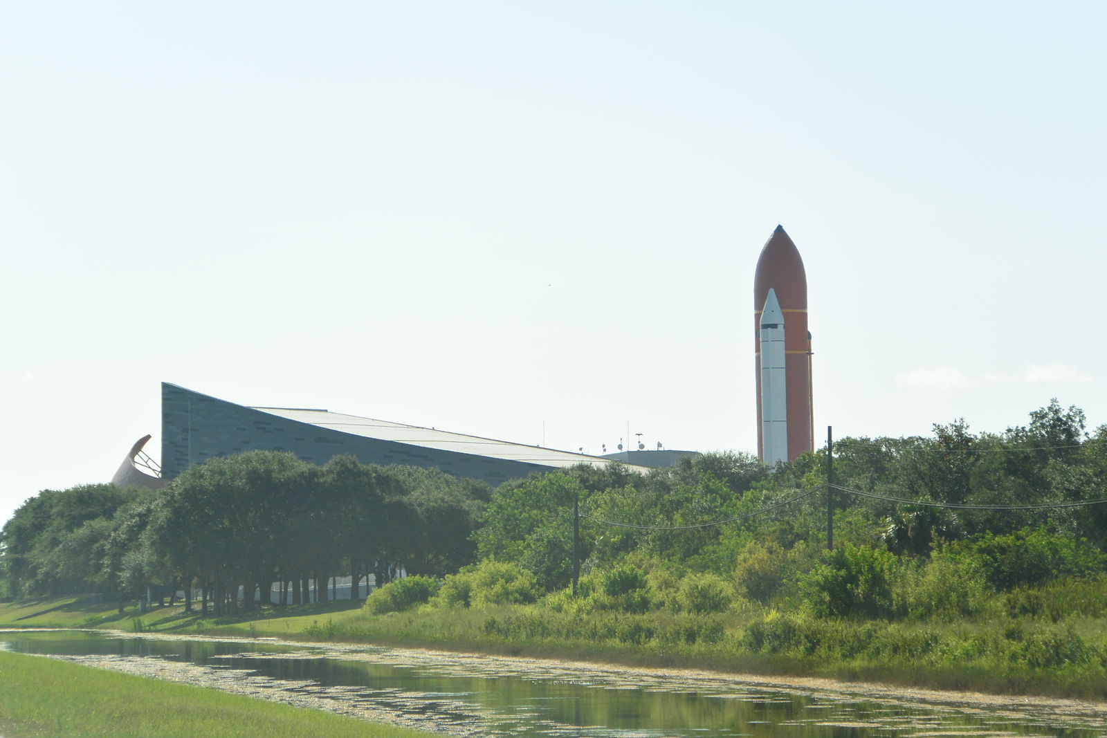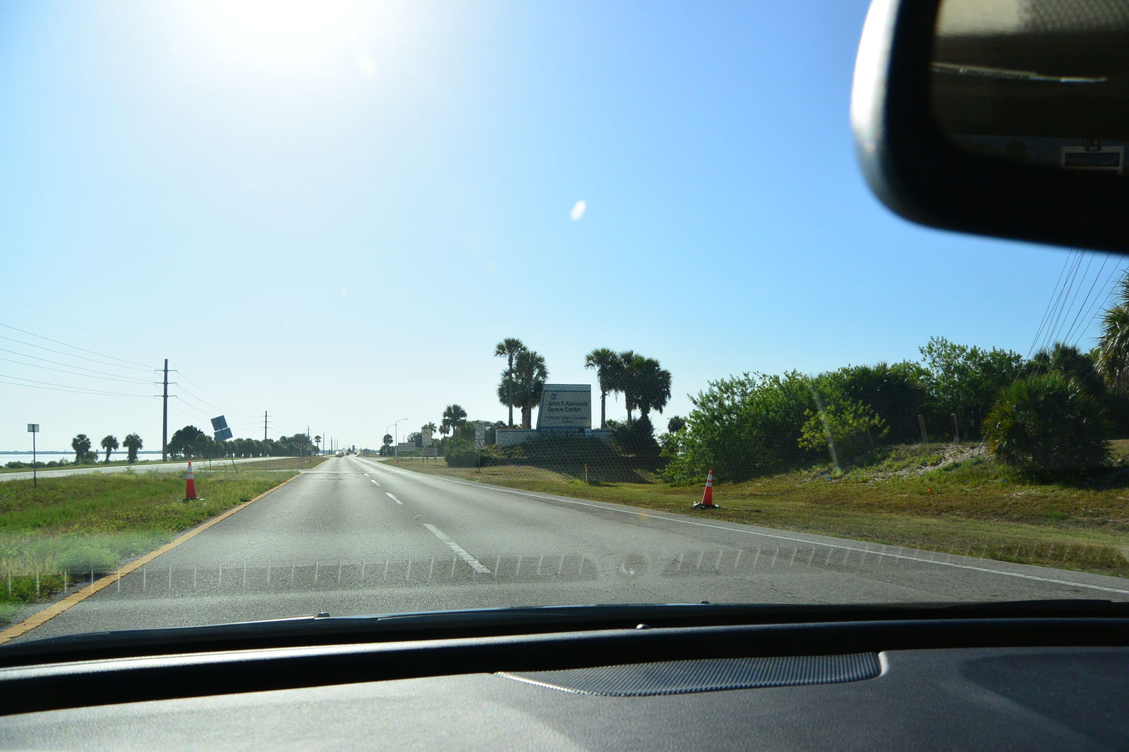 私は,今日の写真のような道路を走っていったが,この道路は海にかかる快適な橋の上を通っていた。そこを延々と走って,さらに沼地に作られた道路を行くと,ずっと先にスペースシャトルの模型が見えてきた。