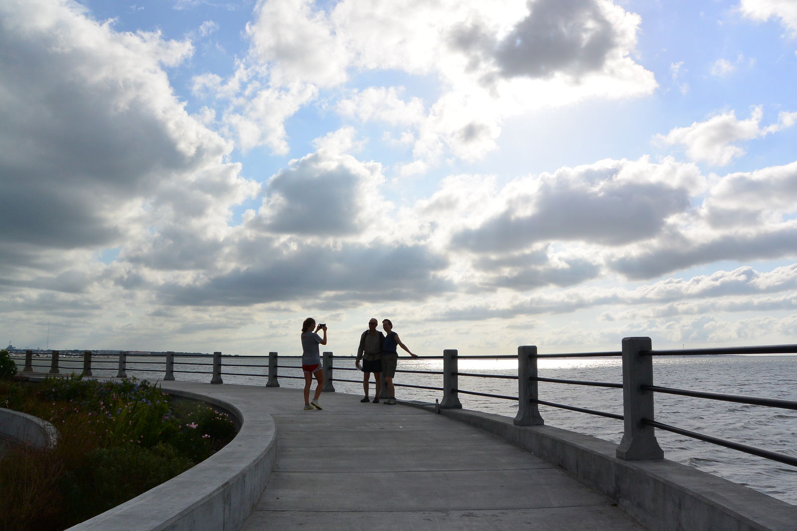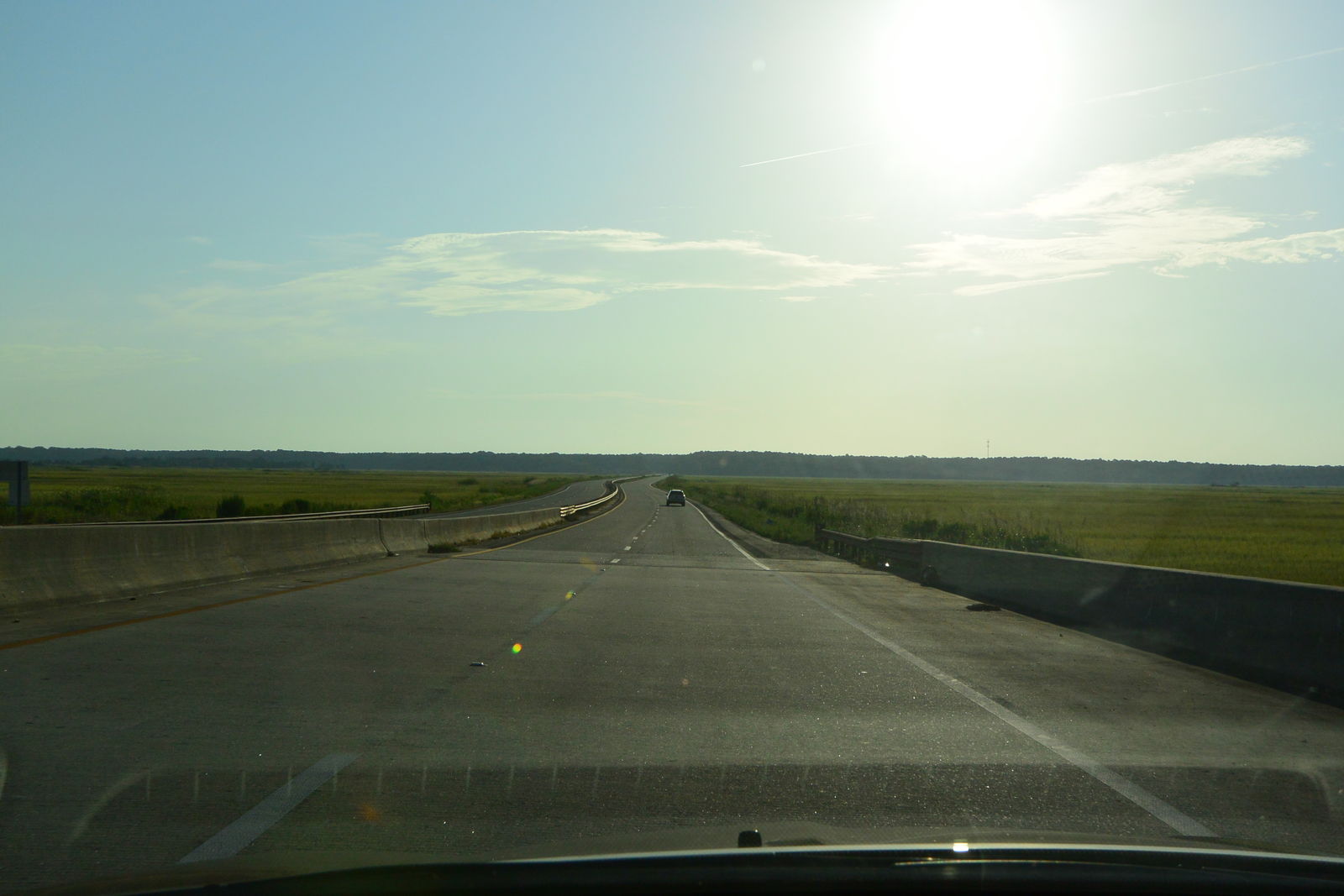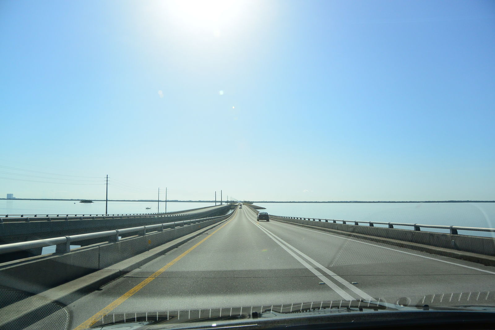 私は,今日の写真のような道路を走っていったが,この道路は海にかかる快適な橋の上を通っていた。そこを延々と走って,さらに沼地に作られた道路を行くと,ずっと先にスペースシャトルの模型が見えてきた。