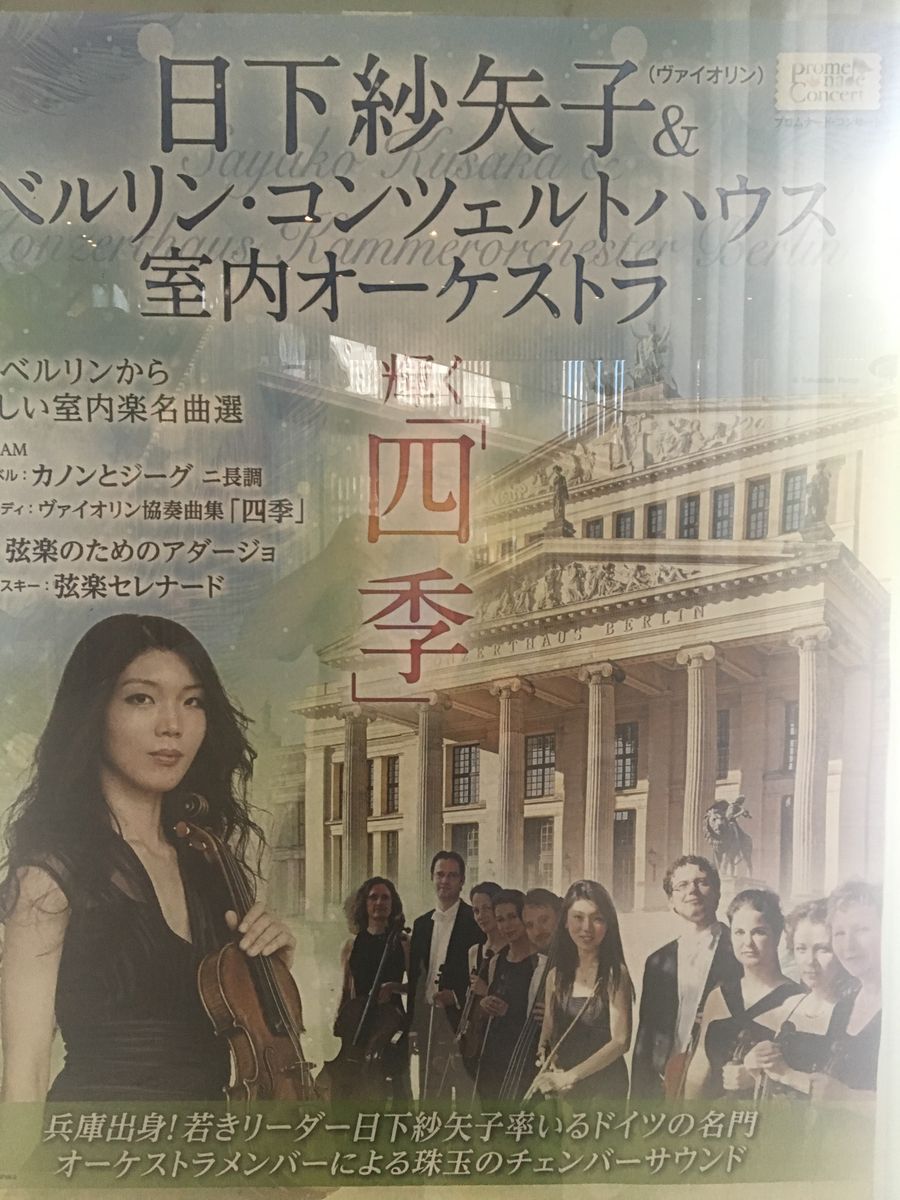 2015年の大みそかにNHKEテレで放送された「クラシックハイライト」で見た,日下彩矢子さんがヴァイオリンソロをつとめたベルリン・コンツェルトハウス室内オーケストラのヴィバルディ「四季」は,私には衝撃的でした。私はこの一瞬で,この人の演奏を生で聞いてみたいと思うようになりました。
