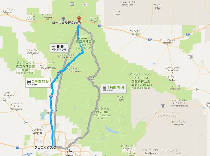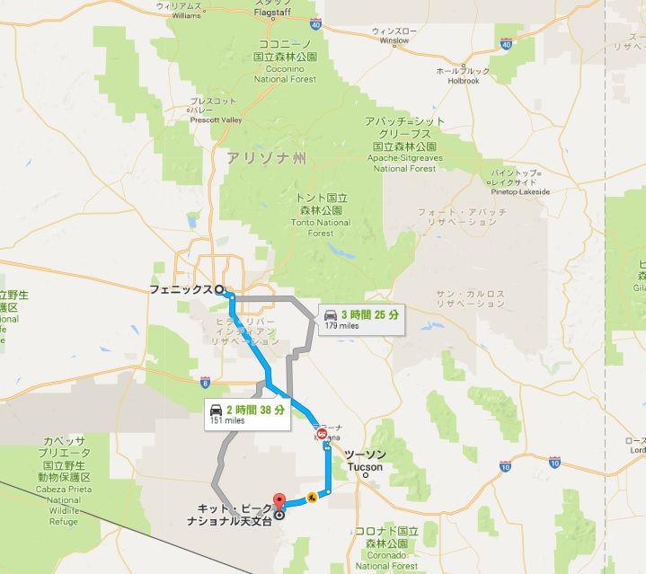 この3箇所はアリゾナ州のフェニックスから行くことになりますが,このなかでは,キットピークだけは少し場所が離れています。