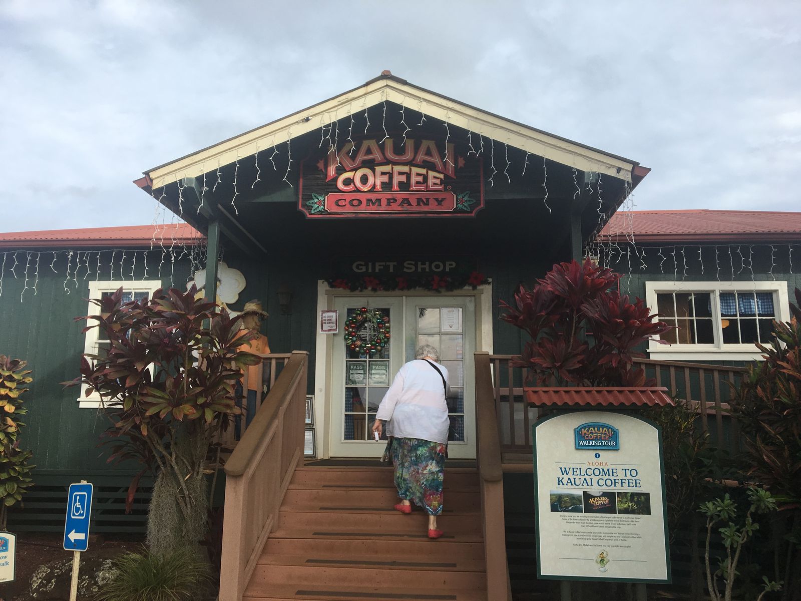 通称「ハレウィリ・ロード」(Halewili Rd)と呼ばれる州道540を走っていくと,やがて「カウアイ・コーヒー・カンパニー」(Kauai Coffee Company)という場所に着いた。舗装されていない広い駐車場があって,結構な車が停まっていたので,私もそこに駐車して中に入っていった。