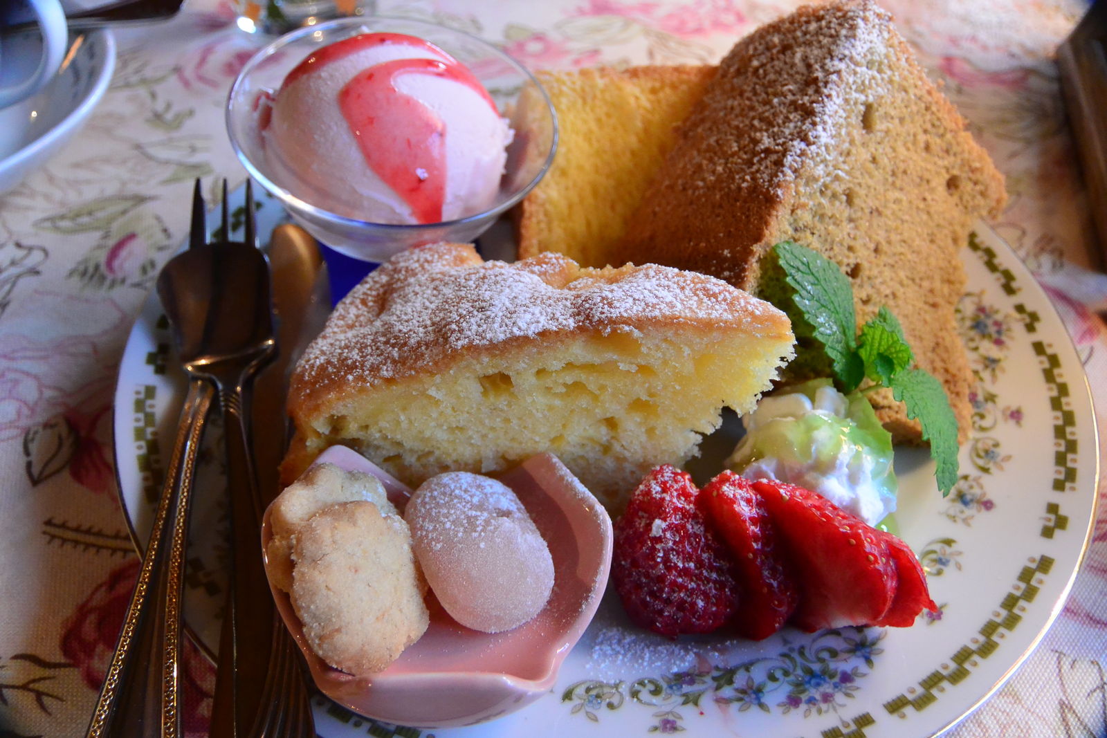 夕食とはいいがたかったのですが,注文したシフォンケーキとフルーツとアイスクリームが紅茶とよくあって,その甘みが歩き通した私の胃にとてもマッチしました。