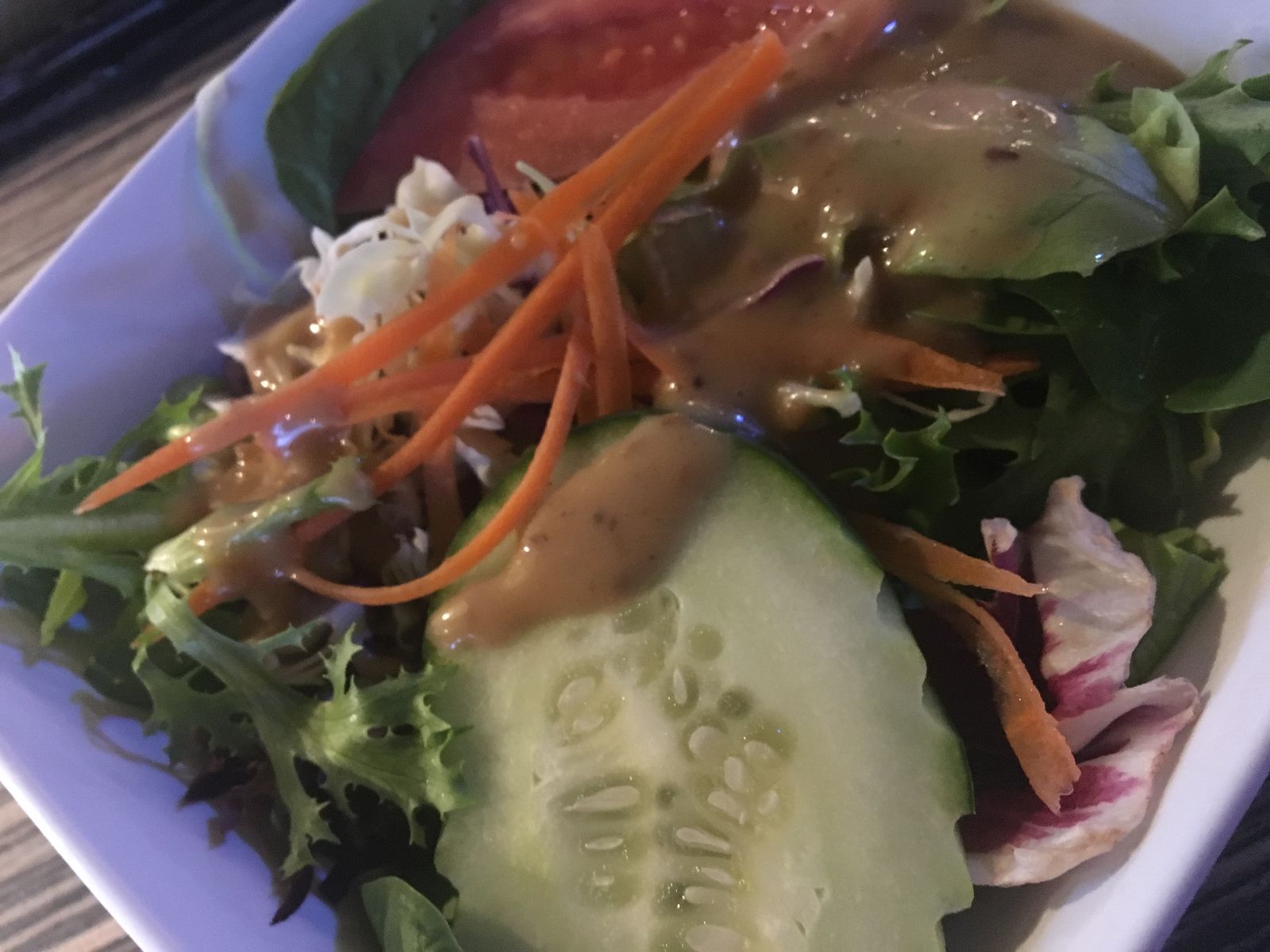 この日の夕食はモールにあったレストランで,ちょっぴり贅沢してサラダとお寿司を食べた。