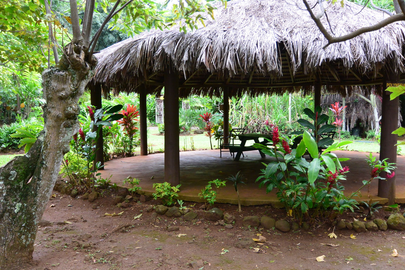 「リマフリガーデン」は州道560が間もなく終点のケエ・ビーチかなと思う手前で急峻な坂を左に上がったところにあったのだというが,私はそれを逸した。マカナ山を背後にひかえて谷間の低地に広がるこの庭園は,復元されて建っている古代のハレ(家)とあいまって,古きよきハワイにタイムスリップされるのだという。また,この場所は古代の住居システム「アフプアア」をいまも継続している自然保護区である。