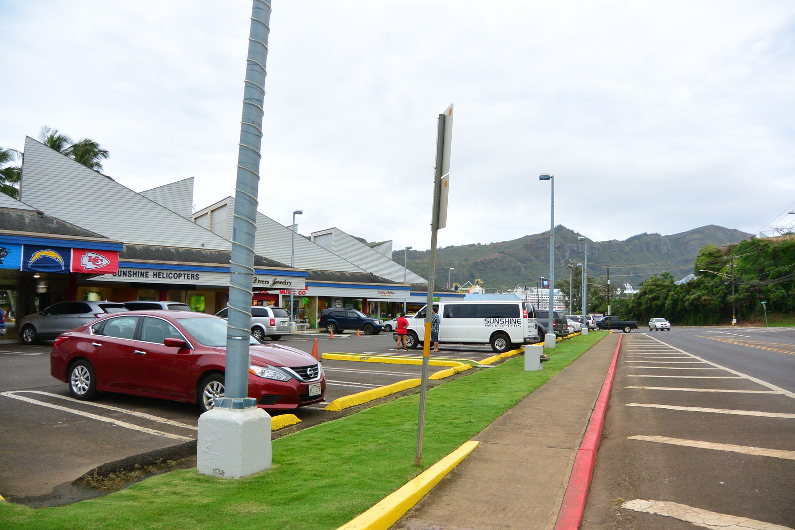 私の宿泊しているポイプからリフエまで行く間に少し遠まわりして,「カラパキビーチ」(kalapaki Beach)を通ることにした。ここにはアンカーコーブショッピングセンター(Anchor Cove Shopping Center)やハーバーモール(Harbor Mall)といったさまざまな商業施設がある繁華街である。