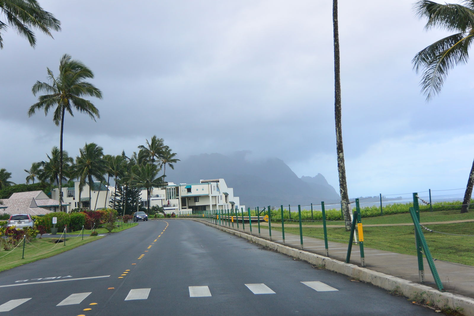 道路はまだ続いていたが,州道56という名前はハナレイ(Hanalei)が終点であった。ハナレイは新しいリゾートタウンである。タロイモ畑が眼下に広がる「ハナレイ渓谷展望台」(Hanalei Lookout)も後回しにして,さらに道路を進んでいくと,州道は560と名前を変えて,急に道路が狭くなった。