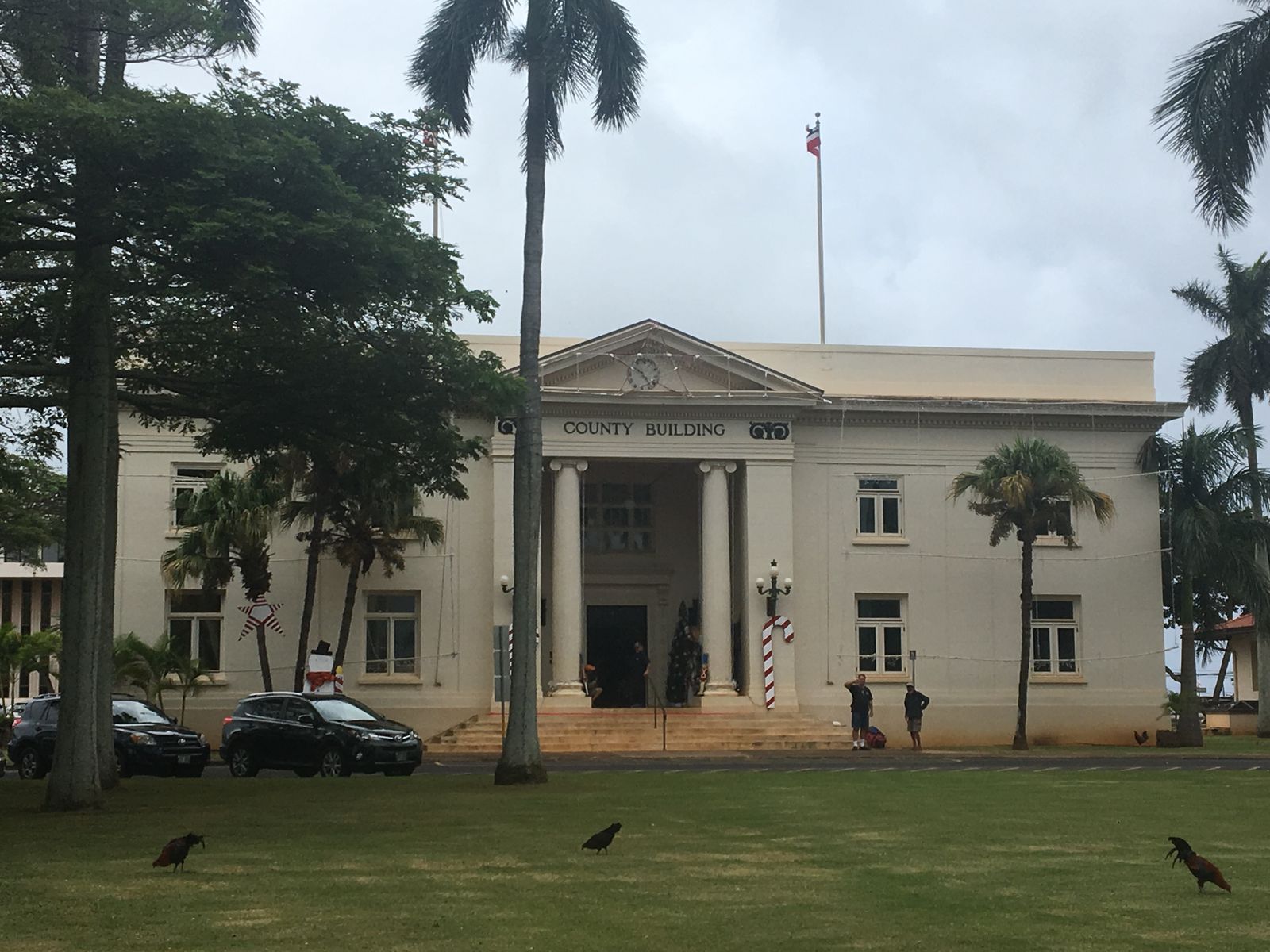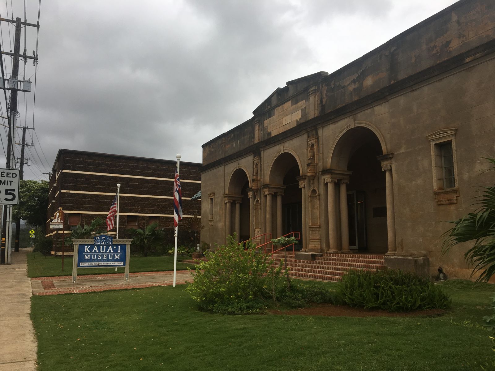 ホテルに帰る前に,リフエの中心にある「カウアイ博物館」に寄ることにした。この博物館はリフエの官庁街にある。博物館のまわりには広い駐車場があったのだが,それは博物館だけの駐車場ではなく,そのあたりの官庁街に来る人共通のところであったので,どこに停めたらいいのかとてもわかりにくかった。というよりも,実際はどこに停めてもよいのであった。