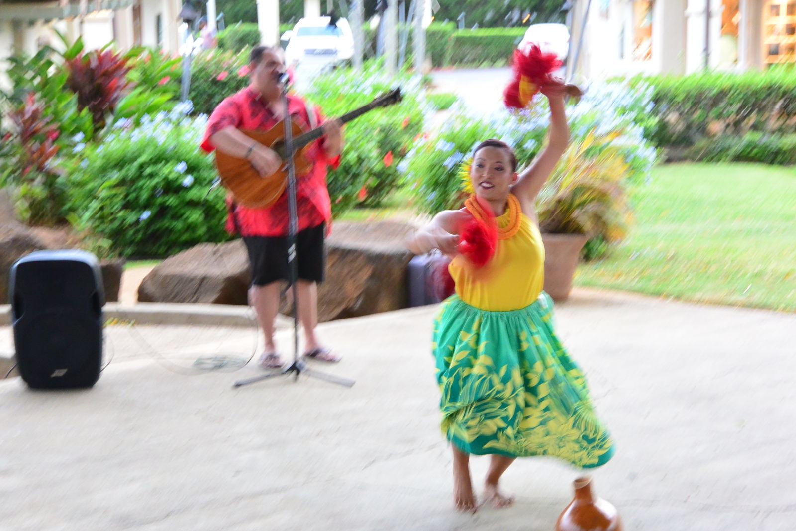 ホテルから道路を隔てた場所にあるいつものモールで食事をとろうと入っていくと,ちょうどハワイアンの生演奏が終わる寸前であった。慌てて写真を写したのでぶれぶれになってしまった。こんなところで生演奏をしているとは驚きであったし残念なことをした。こんなことなら博物館に寄らないでもう少し早くホテルに戻ればよかった,と後悔したのだった。