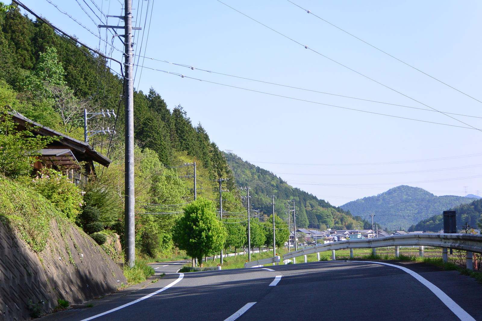 さらに県道65号線は登り坂でした。それでも,少しでも平坦な場所があると,そこには狭いながらも田んぼがあって,その一角には家が建っていました。あるいは,山が無残に削られて宅地開発をしていました。また,別の場所は,宅地を開発したのに売れ残ってそのまま荒れ果て,作られた道路は廃道になっていました。そうした無計画のどこにでもある日本の風景がここにも存在していました。