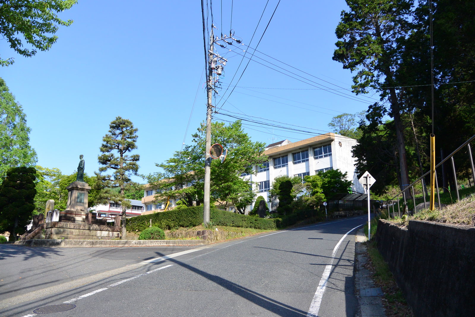 左手に釜戸小学校がありました。学校がこんな坂の上にあるのだから,釜戸町の子供たちは,いつもこの坂を登り降りして学校に通っているといいうことになります。
