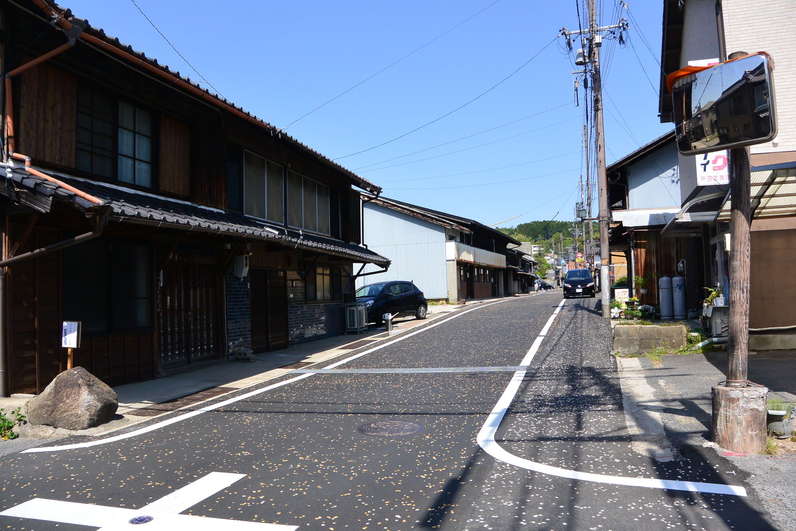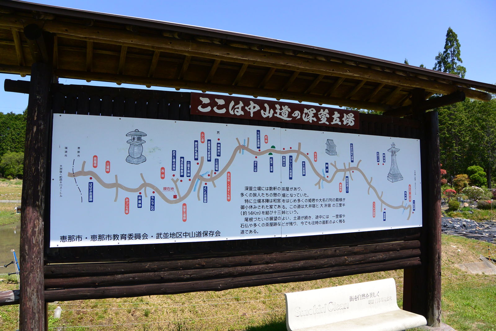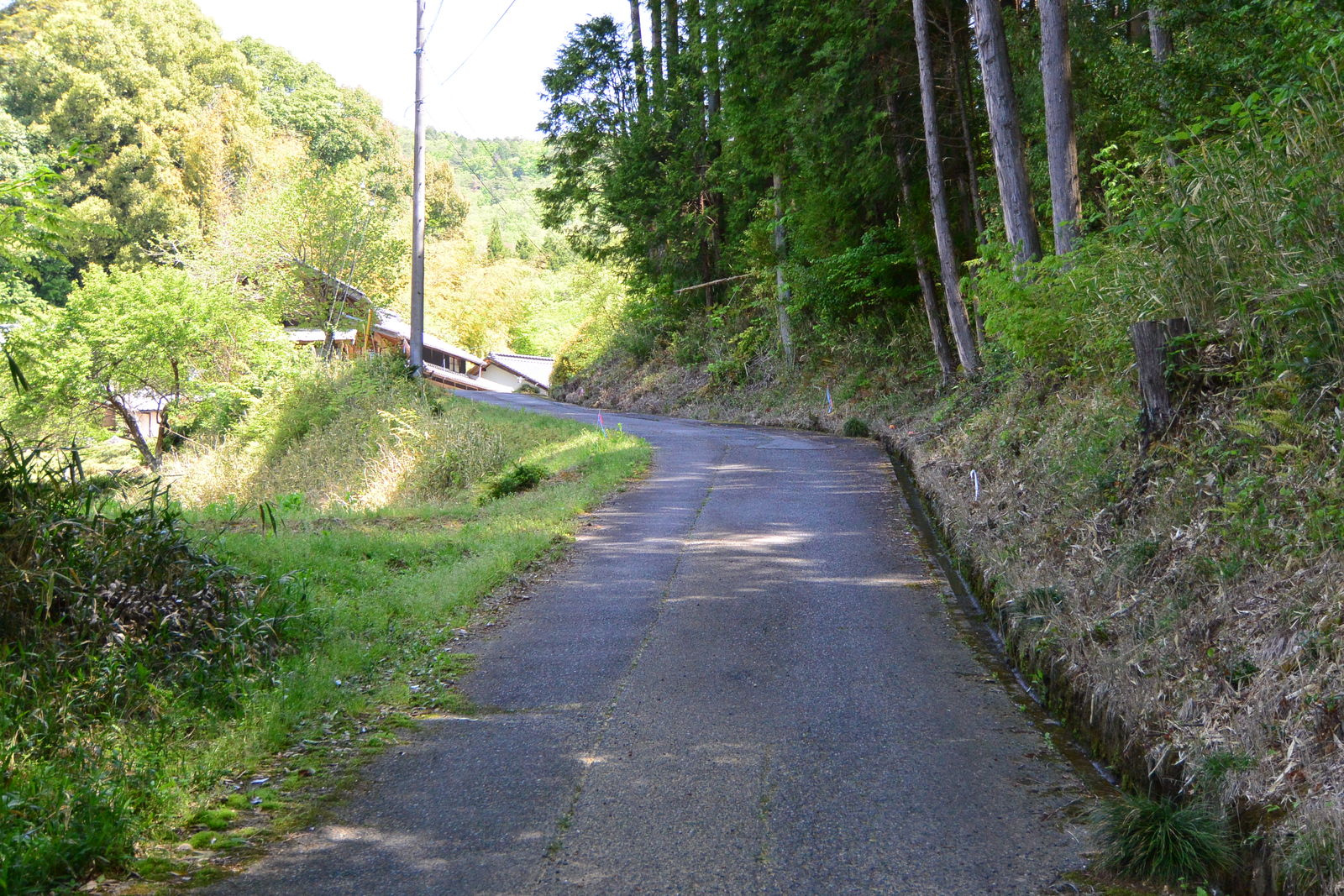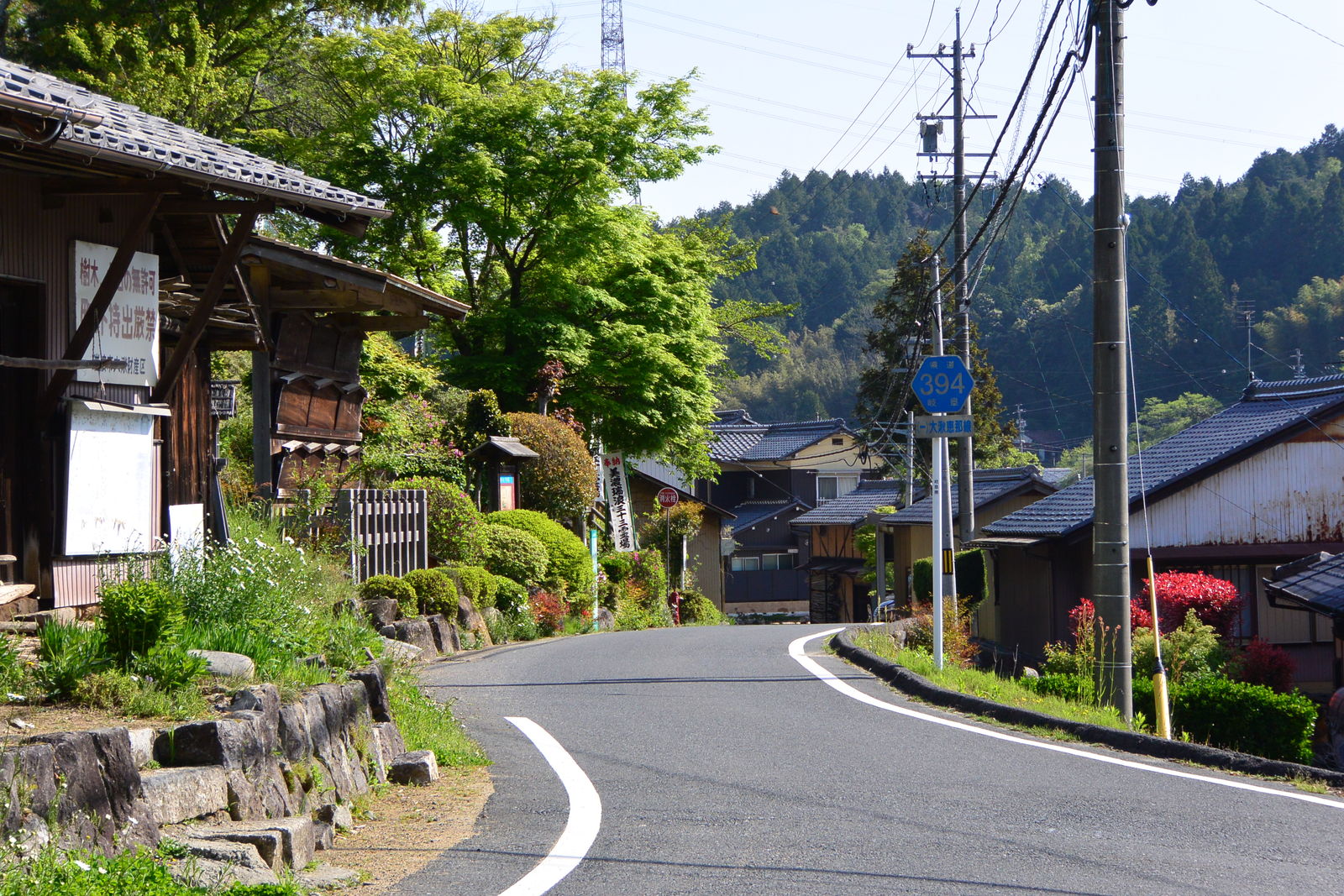 広く舗装された道路はほとんど車も通らないから,歩いていても静寂に包まれていて,聞こえるのはウグイスの鳴き声だけでした。そしてまた,このあたりはめずらしく道路にゴミひとつなく,とても美しい村でした。道路の脇に,このあたりをボランティアが清掃活動を行っているという看板が立っていました。アメリカではどこでも「Litter Control」(「ゴミ掃除をしている」の意)の看板を見かけるのですが,日本でははじめて見ました。