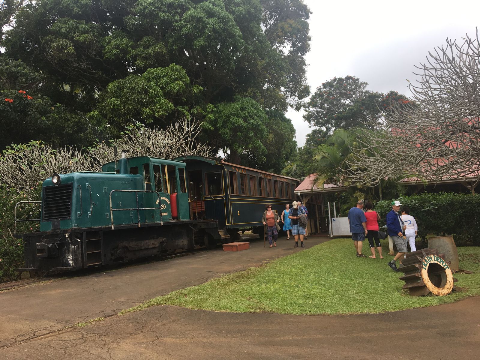 さて,リフエからポイプに向かって走っているときに「カウムアリイ・ハイウェイ」が狭くなる少し前あたり,北側に何やら公園のようなところがあって私はずっと気になっていた。調べてみると,地図には「カウアイ・プランテーション・レイルウェイ」(Kauai Plantation Railway)と書かれていたので,はじめ私はカウアイ島に走る鉄道の駅でもあるのかしら,と思った。