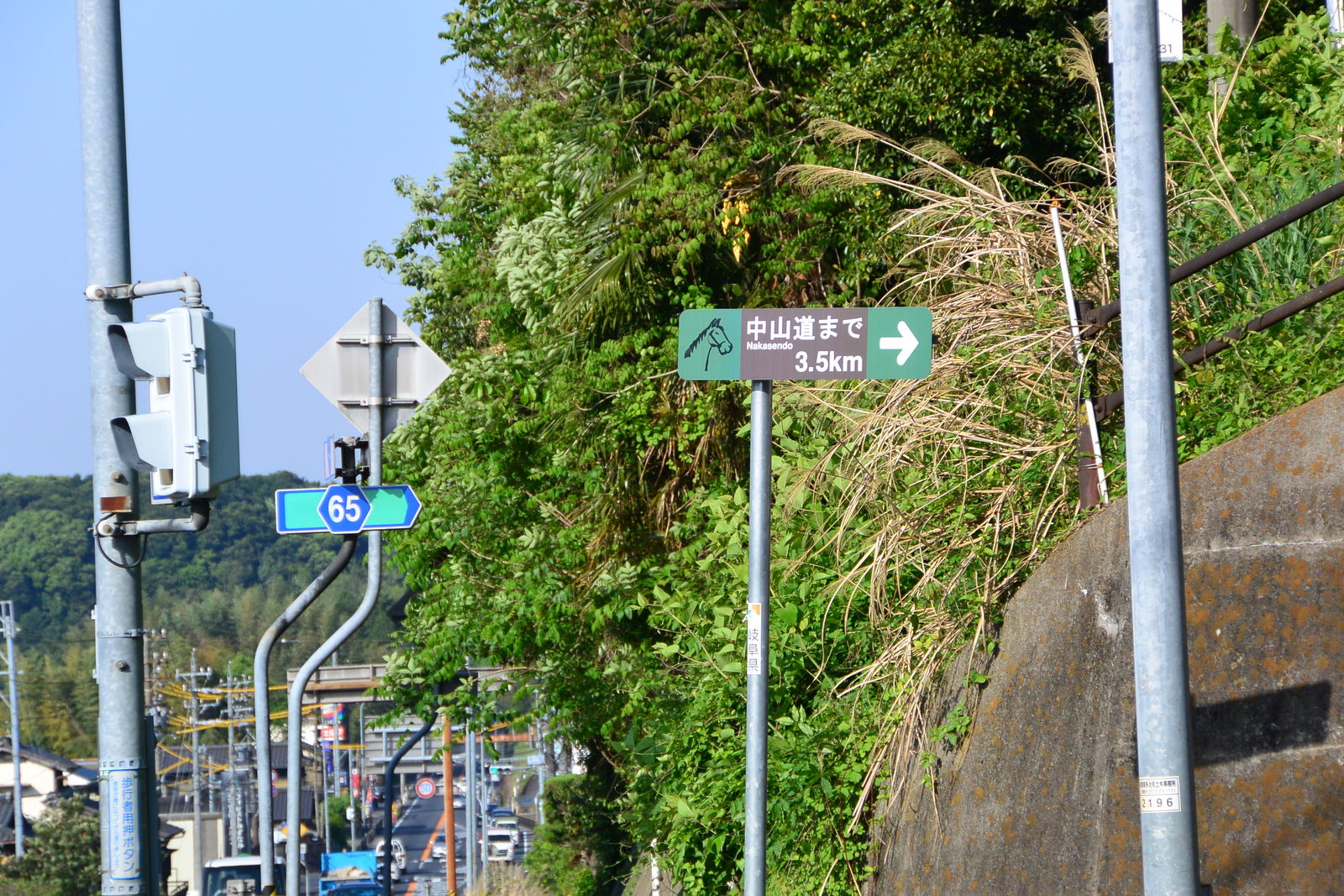 ずいぶんと遠回りをして,やっと線路の下を通る通路を見つけてそれをくぐりましたが,駅に置いてあった地図をもらってこなかったら,ここですでに道に迷うところでした。そのあとは国道19号線を横断してもいいのですが,ここもまた道路の下をくぐる通路があったので,そこを通りました。さて,ここから大湫宿まで3.5キロメートルの急坂のはじまりです。