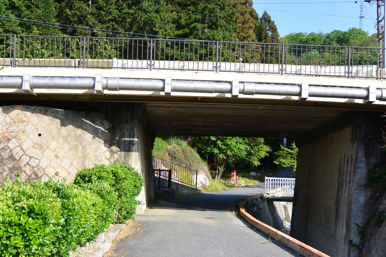 すごい勾配の道は,その先,今度は中央自動車道の高架の下を通ることになります。