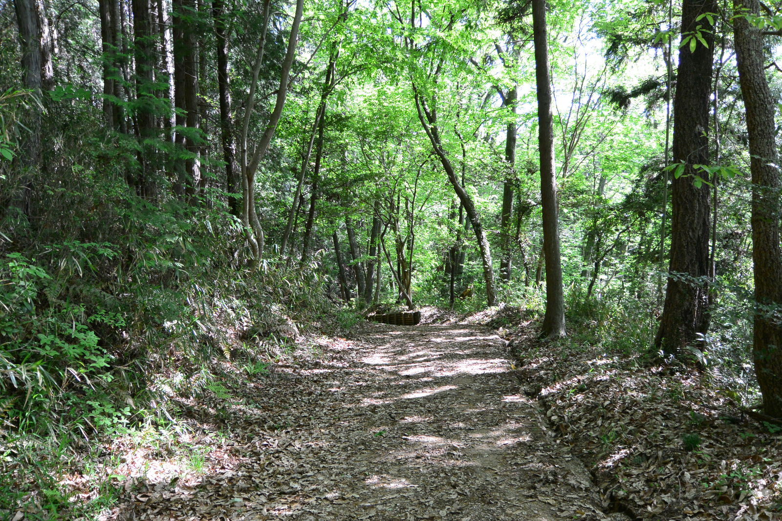 さらに登っていくと,道路は中央自動車道の高架下を通り,しばらくは中央自動車道の側道のような感じで進んでいくことになりました。そこから山に入っていくと,私が駅でもらってきた地図にはそのあたりで歩行者だけが通れる近道が書かれていたのですが,私はそれを見逃したようで,その先も車道をひたすら登ることになってしまったので,かなりの距離を無駄にしました。しかし,車道とはいえ,すごい勾配です。この日はとても気温が高くなるという予報だったので私は半そでシャツだったのですが,釜戸駅を降りたときは小寒かったのに,すでに汗をかきはじめました。