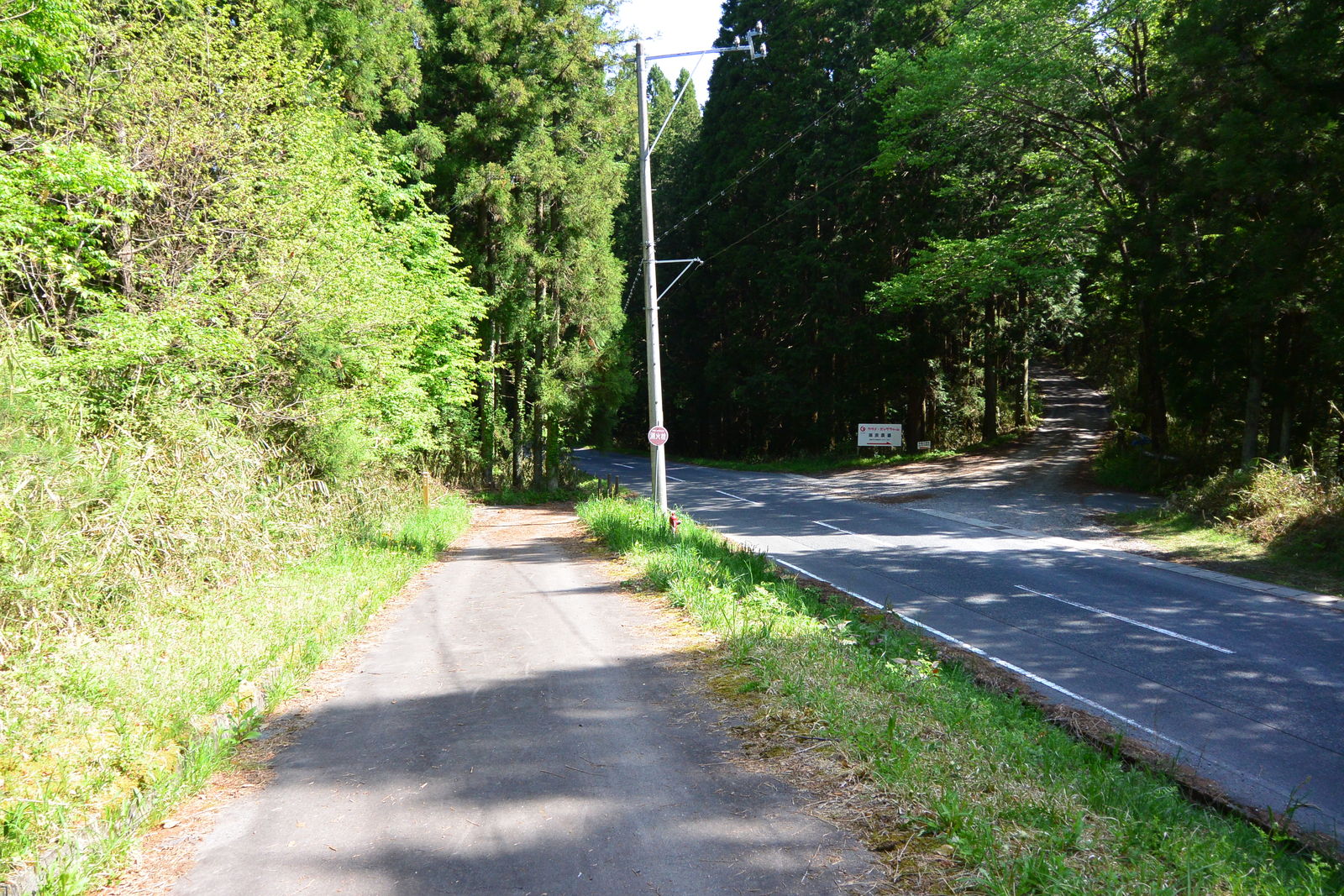 やがて,私が釜戸から登ってきた県道65号線はT字路にさしかかりました。ここからが旧中山道でした。県道65号線は左に曲がって旧中山道と併用区間となり,西に向かって琵琶峠を越えて大湫宿の次の宿場である細久手宿に続いていきます。
