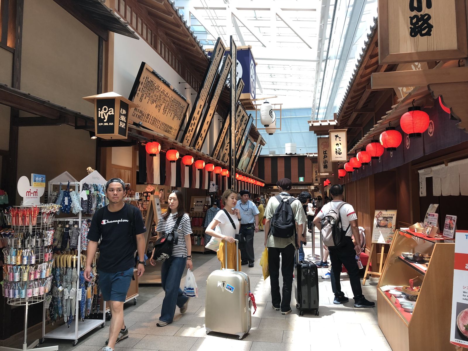 空港のなかには江戸の街並みを模した一角があった。これは外国から来た人たちのウケを狙って作られらたものであろう。おそらくはじめて海外から来た人はこれを見て,驚き,はじめは感動するに違いない。しかし,彼らは,こんなものを見たさに日本に来たわけではあるまい。
