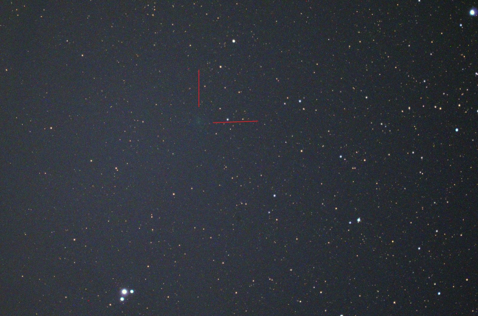 彗星はすでに核が分裂しているのではないか,という懸念もあったそうですが,幸い,かわいい尾をひいた姿を写すことができました。