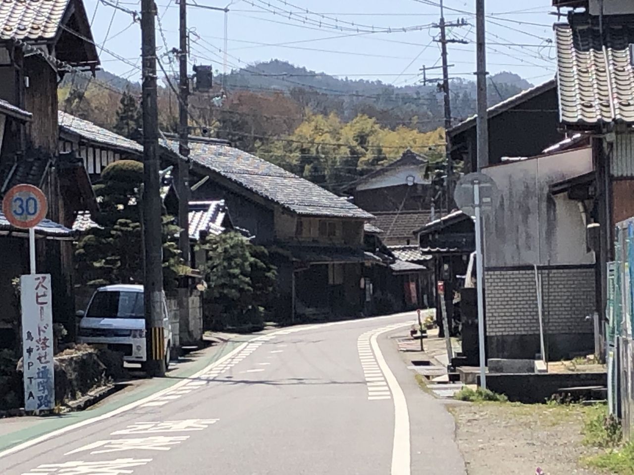 展望台を過ぎて歩いていくと,やがて,宿場の面影を残す町並みとなりました。特に町ぐるみで保存活動をしているような風はありませんでしたが,国道から離れているので,昔のままの町が残っているのでしょう。