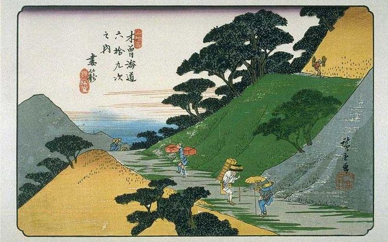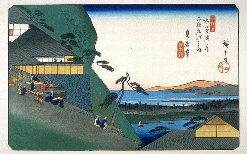 また,歌川広重の東海道五十三次の白須賀宿は潮見坂を描いています。