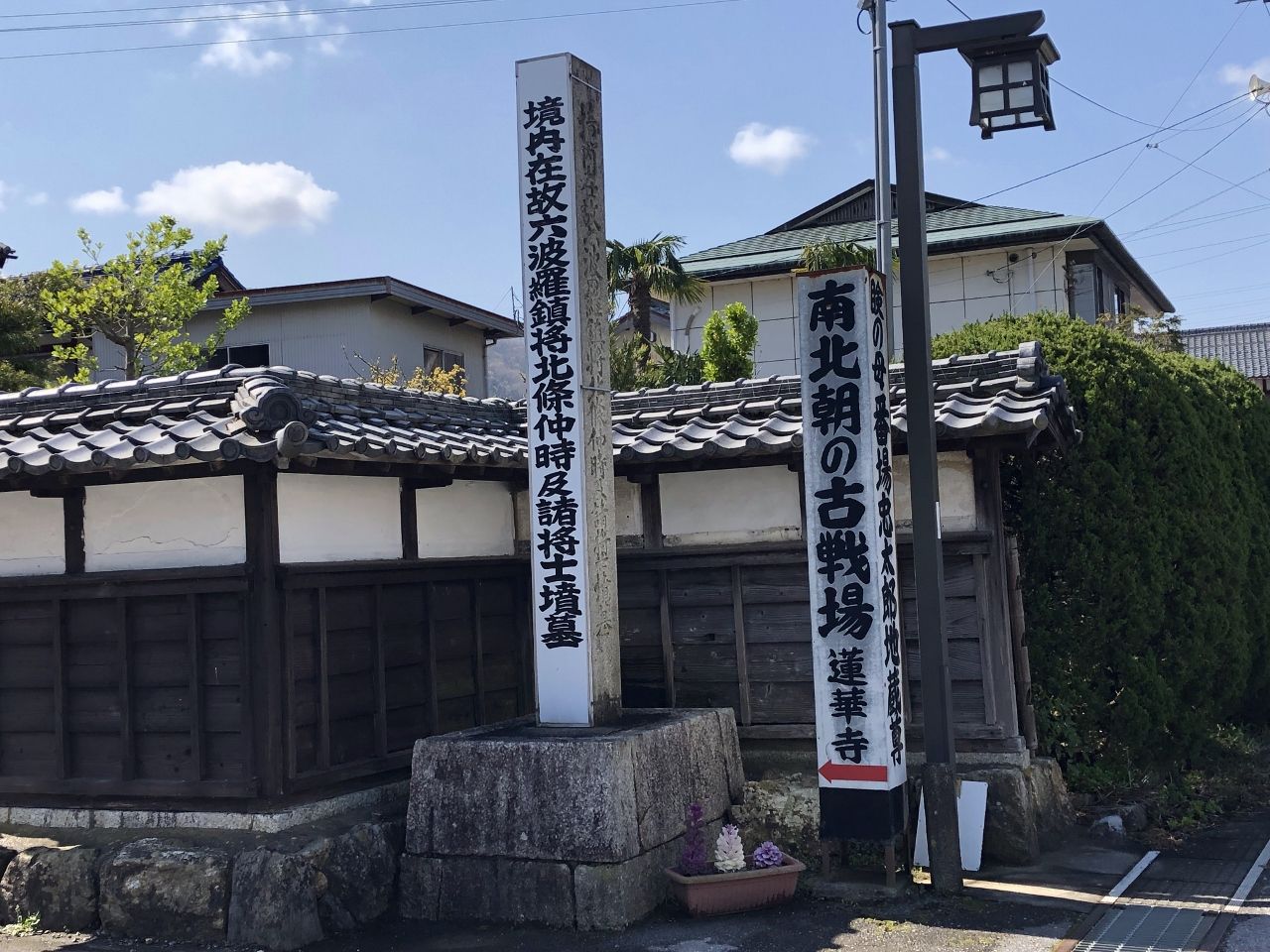 1284年(弘安7年),鎌刃城主土肥元頼が寺を再建しましたが,この寺のすごいのは,1333年(元弘3年)足利尊氏に攻められた六波羅探題北方の北条仲時が東国へ落ち伸びる途中,行く手を佐々木道誉に塞がれ蓮華寺へ至り,本堂前で一族郎党432名と伴に自刃したという歴史があることです。こうなると「平家物語」の世界が頭の中を駆け巡ってきます。