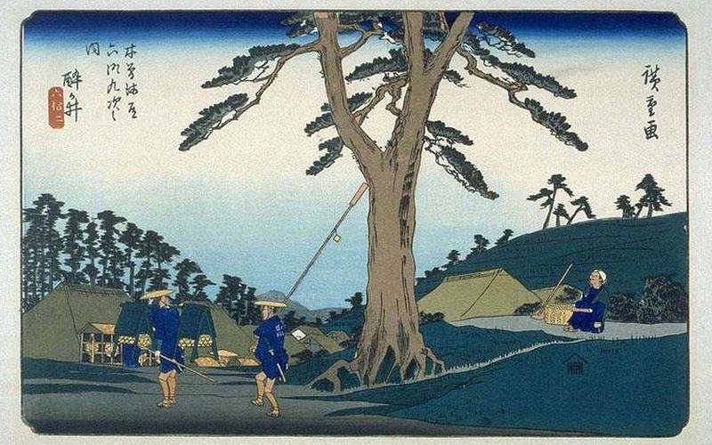 と北八がこの歌を口ずさんだところ,駕籠屋に 「ハア旦那はえらい歌人じやな~」とおだてられ,そのまま調子に乗って酒を奢らされたという話があります。