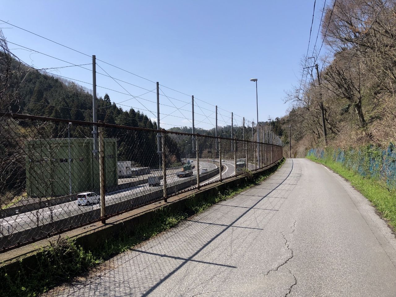 何のおもしろみもない国道1号線に沿った歩道を進んでいくと神鋼電機の大きな工場が現れました。右手には新幹線の高架が接近してきました。