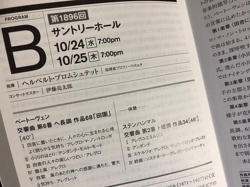 この日のコンサートでは,ステンハンマルの交響曲第2番は,ベートーヴェンの交響曲第6番「田園」のあとに演奏されました。こんな有名な曲のあとを務めるのだから重責です。