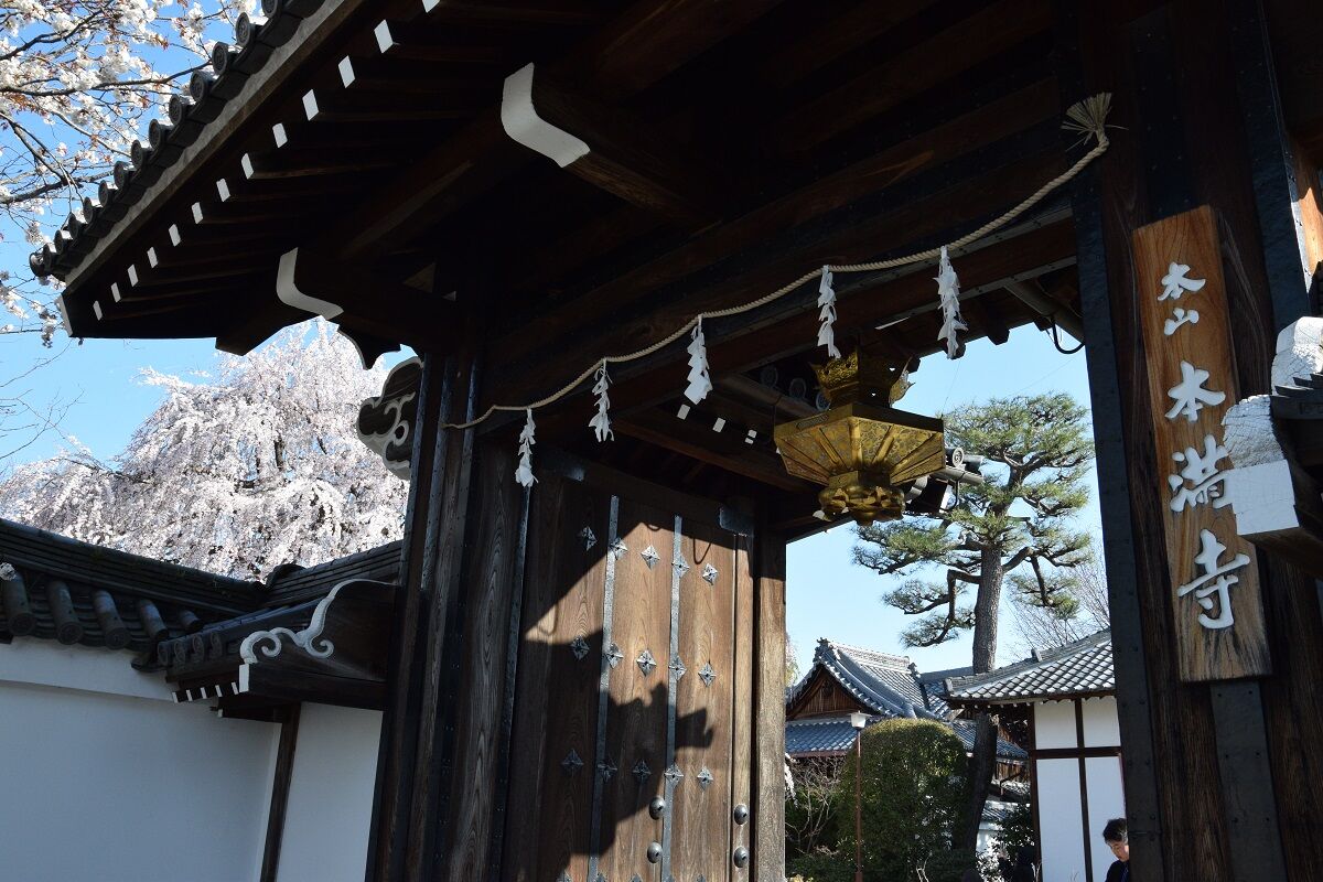 本満寺の場所は出町柳の少し北なので,京都御苑からはさほど遠くありませんが,街中の小さなお寺さんで目立たず,どこにあるのかすぐにわかりませんでした。歩道を歩いていると,ここもまた,まばらですが,カメラを持った人が集まっているところがありました。そこが本満寺の門でした。門をくぐると立派なしだれ桜が満開で,まわりで数人の人が写真を写していました。今日が見ごろだと,知っている人は知っているんだなあと思いました。