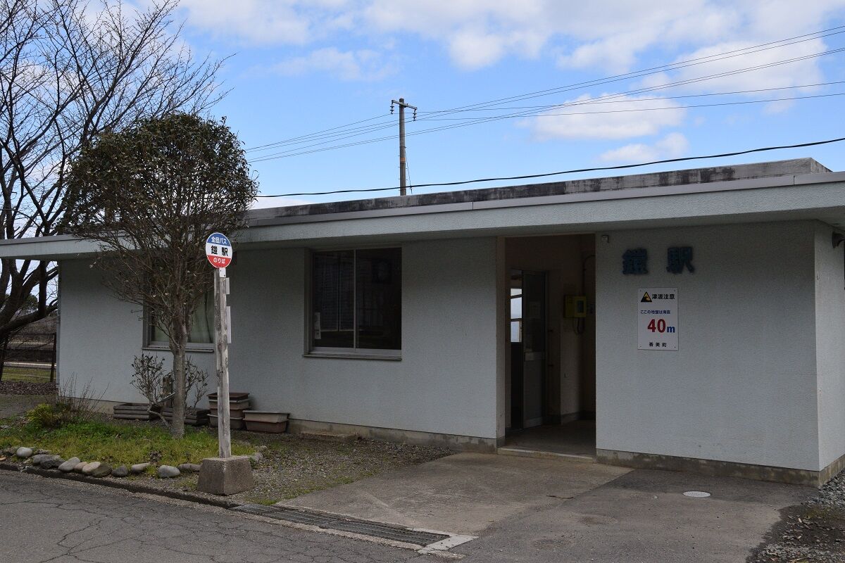 餘部駅のひとつ手前,つまり京都方面に鎧駅があります。この駅に行くには国道を離れて海岸にむかって急坂を降りていく必要があるのですが,この道路,ガードレールがなく,よそ見していると崖から落ちます。おそらく,こんな道路を通るのは地元民くらいなのでしょう。