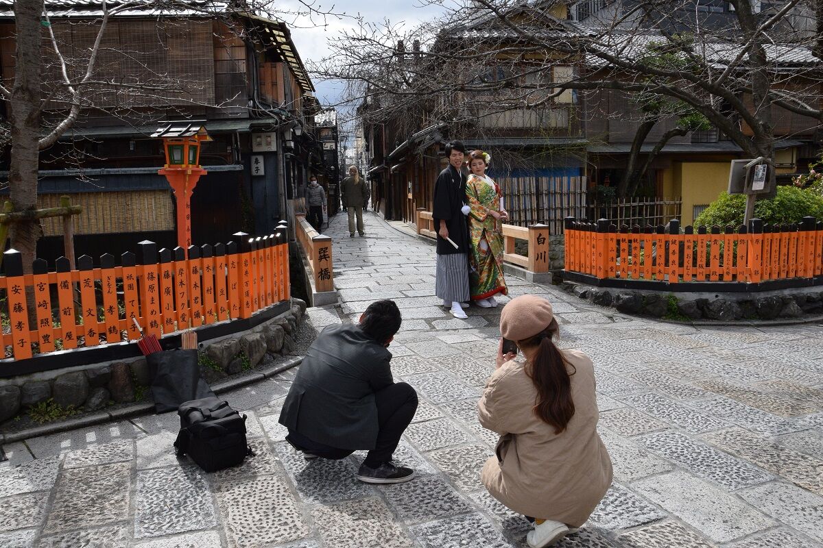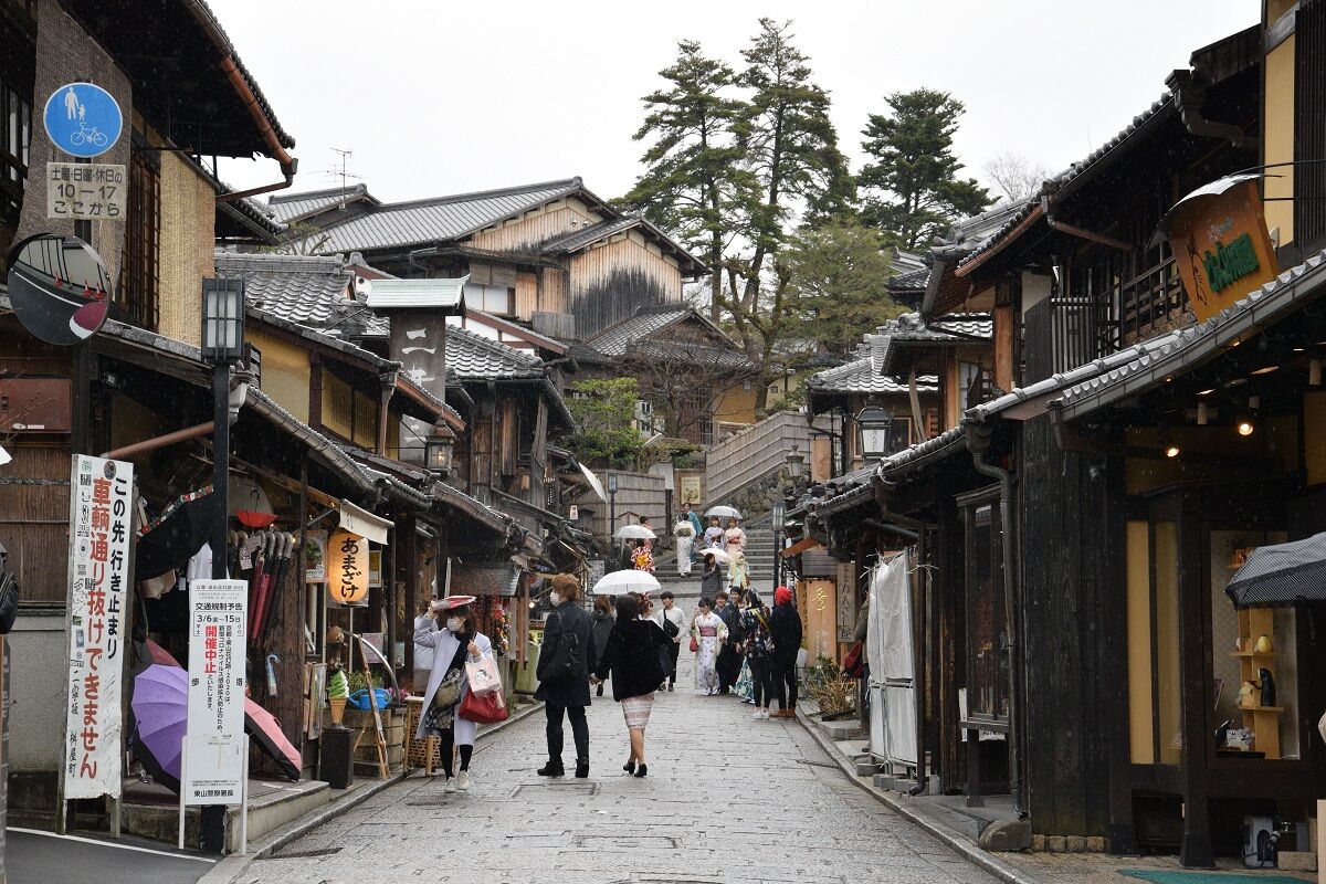 高台寺を目指して「ねねの道」までやってきました。先週とは違って桜が咲いているのでもっと人がいるのかと心配しましたが,杞憂でした。